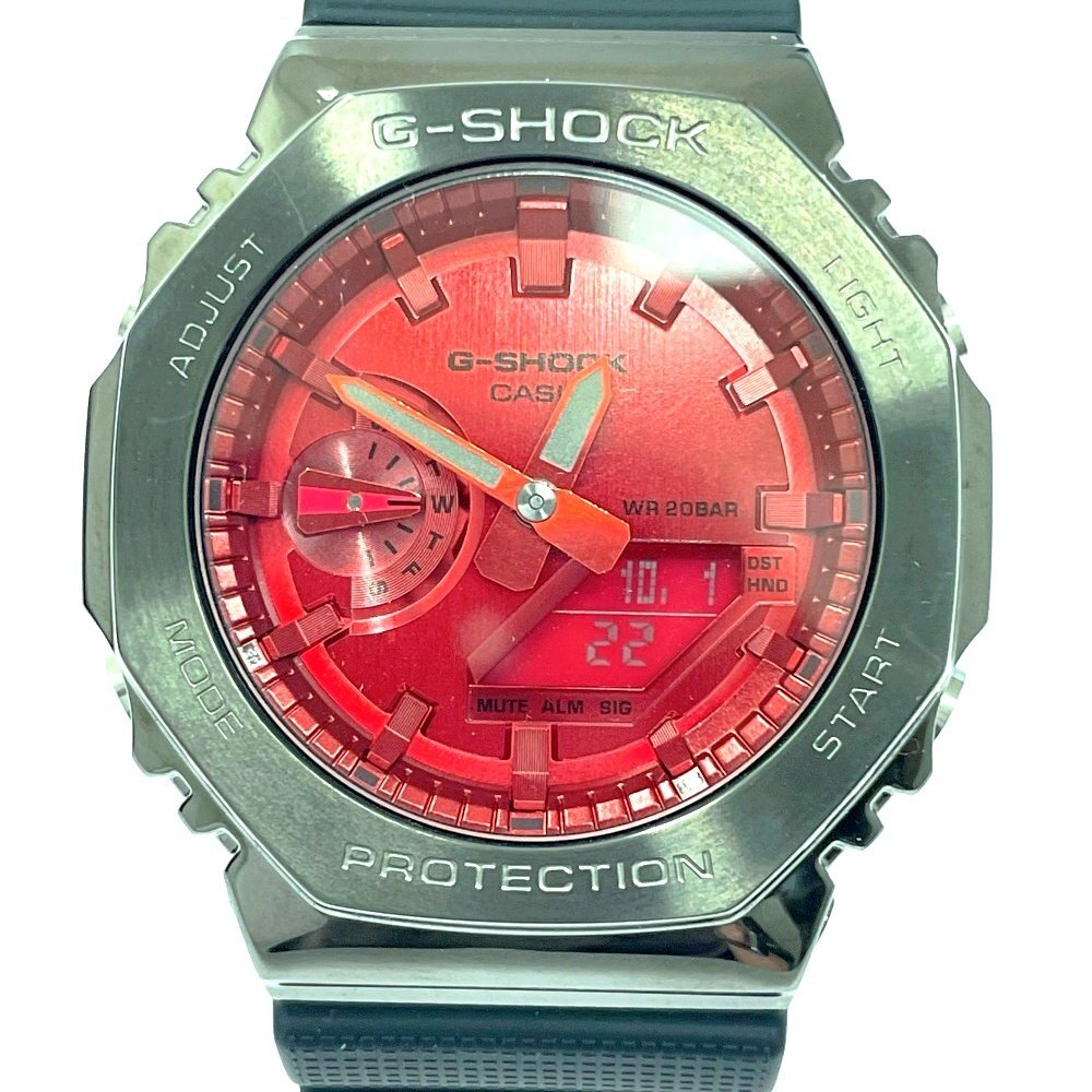 【1円スタート】【箱付き】CASIO カシオ GM-2100B Gショック デジアナ レッド文字盤 クオーツ メンズ腕時計 486128