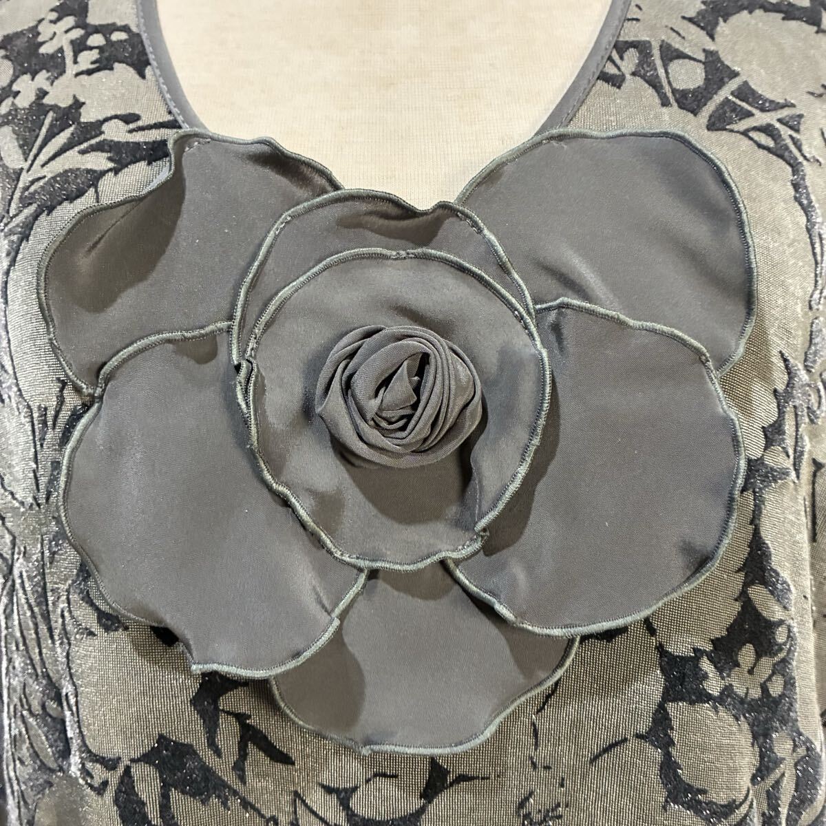 vicky valere フランス製 総柄ワンピース ロングワンピース 花柄ワンピース 薔薇柄 ストレッチ 伸縮性 グレー 希少【送料一律/同梱可能】Wの出品です。