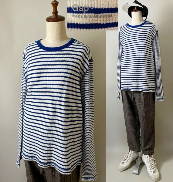 ★【近年ビンテージ 2000年代】00s GAP ギャップ コットン セットインスリーブ 長袖 ボーダー サーマル ラグラン ロンT Tシャツ L ブルー