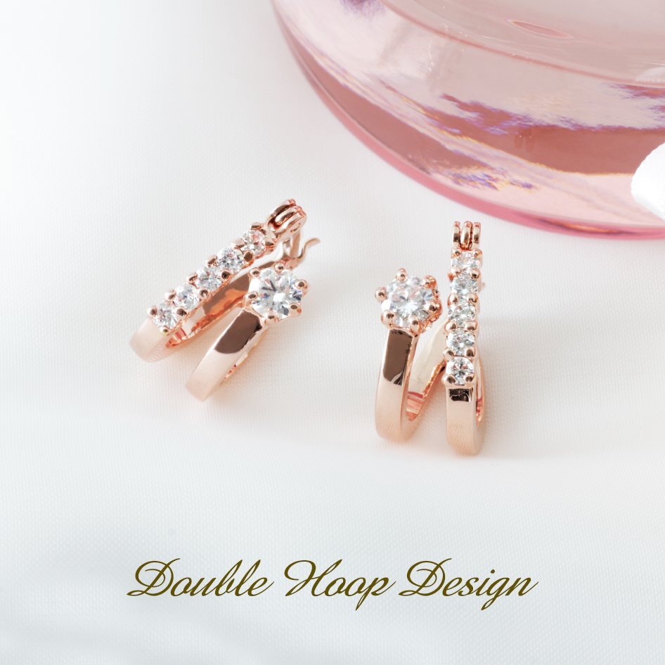 新品/フープピアス/K18GP/レディース/ピアス/フープ/小さい/小さめ/18金/18kコーティング/ピンクゴールド/リング/上品/大人/女性/ダイヤ/CZ
