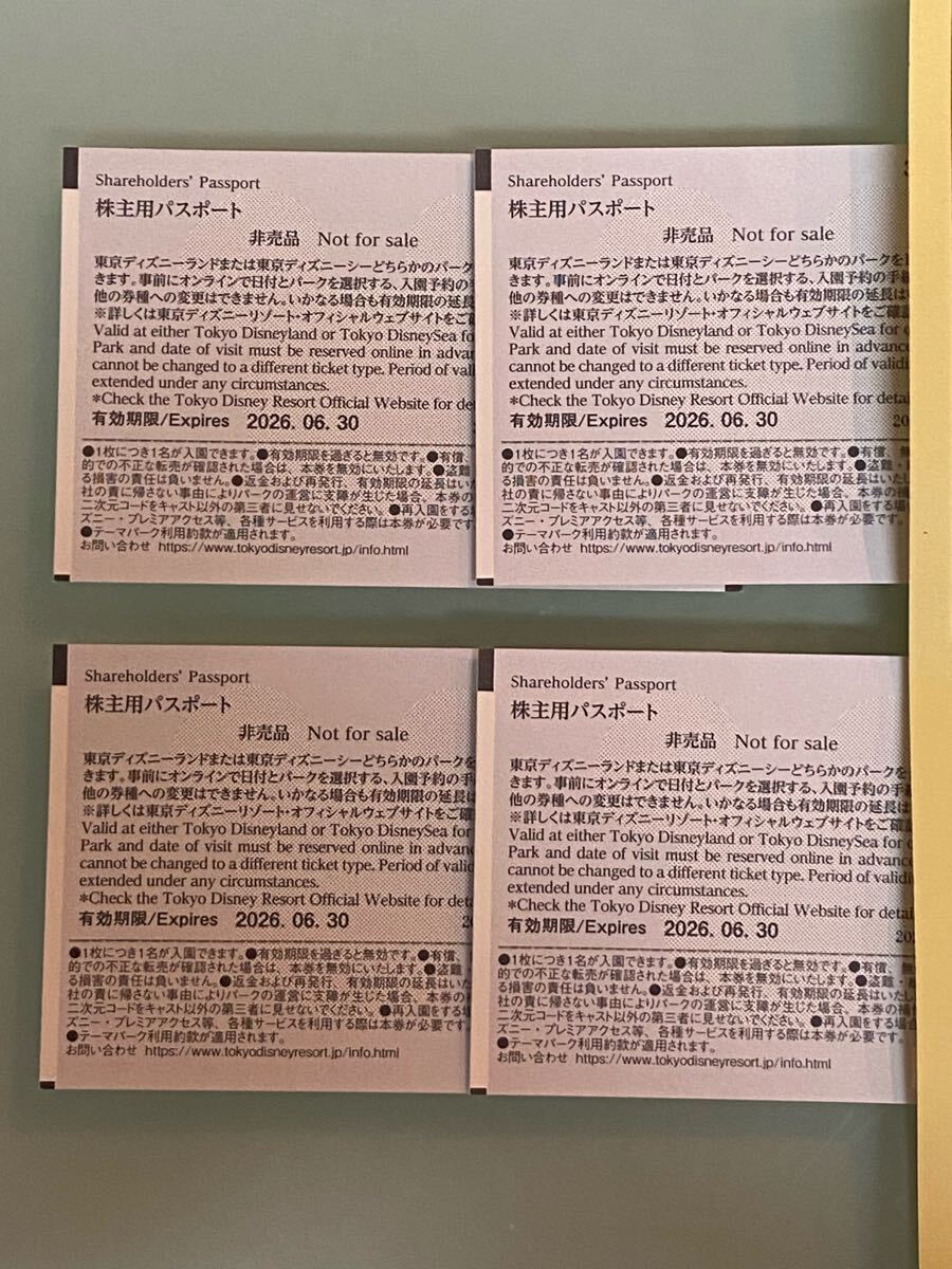 東京ディズニーリゾート 株主優待券 オリエンタルランド 4枚