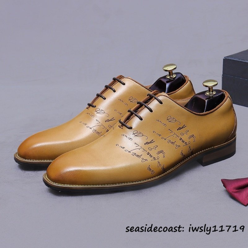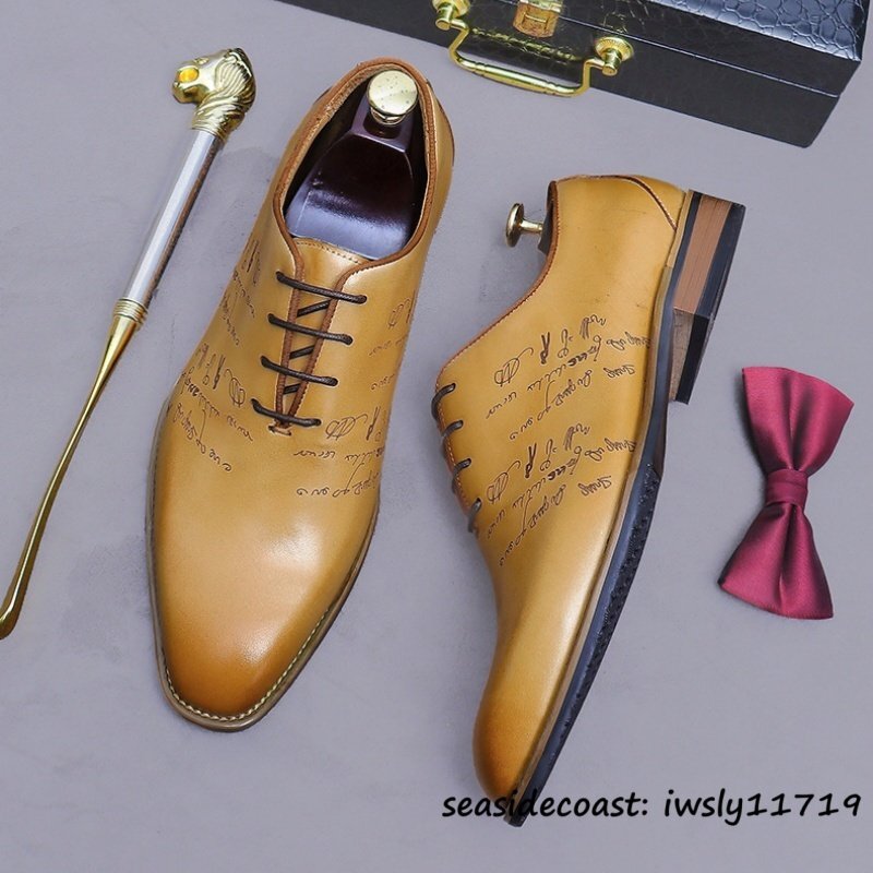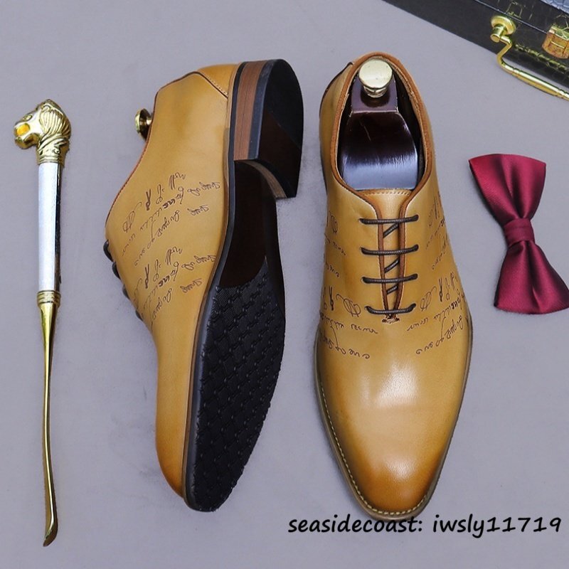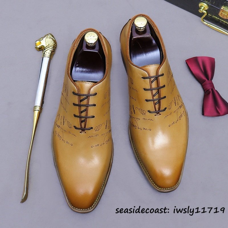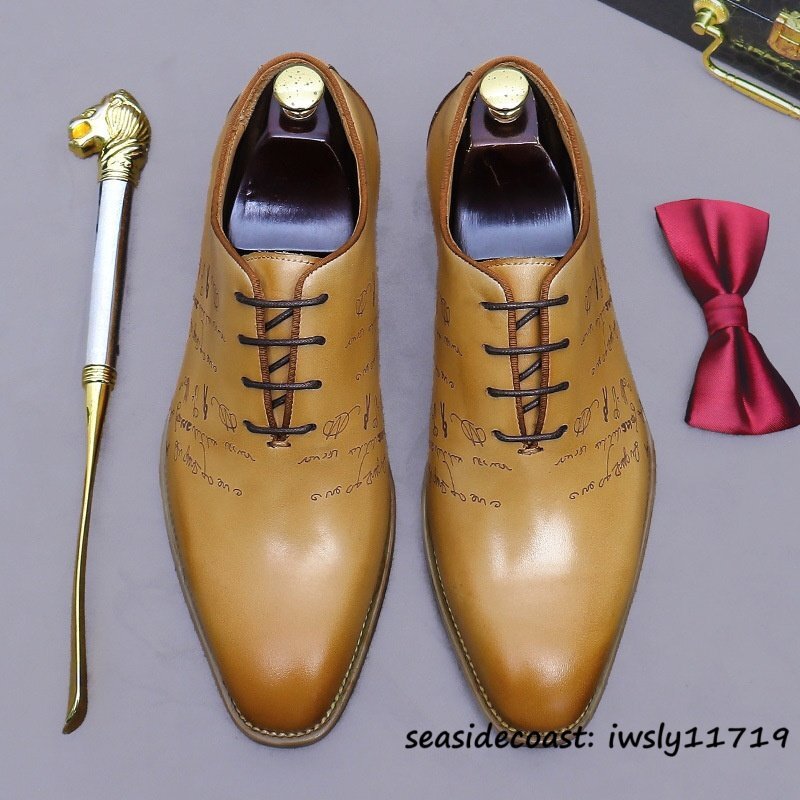 最高級★定価9万 レザーシューズ 新品 ビジネスシューズ 本革 メンズ 職人手塗仕上げ 超希少 彫り 紳士靴 牛革革靴 結婚式 ブラウン 25.0cm