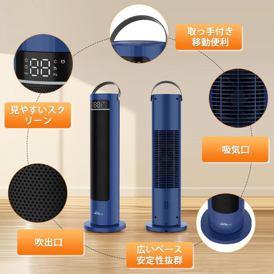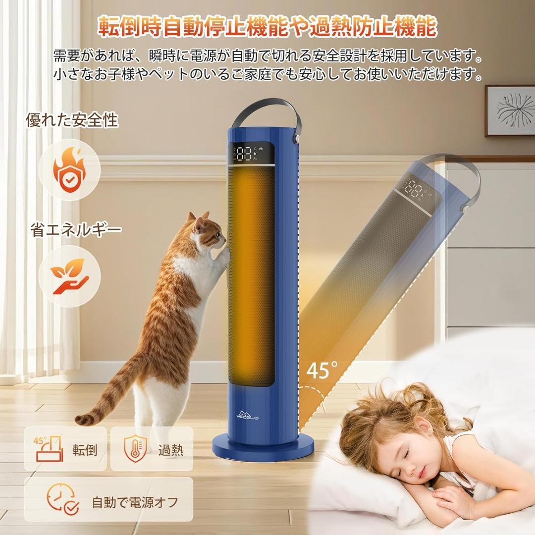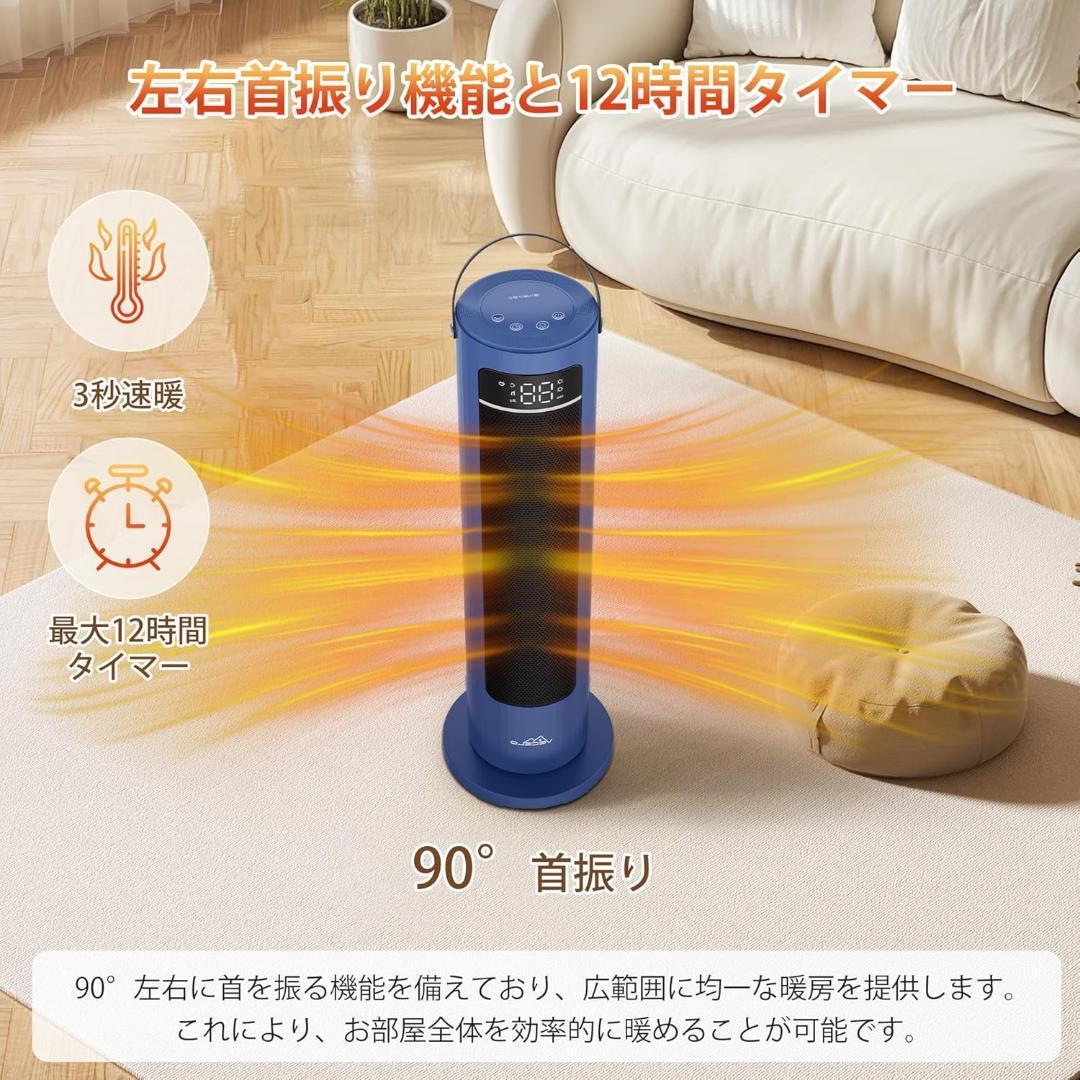 VECELO セラミックヒーター リモコン付き 電気ファンヒーター 3段階温度設定 タイマー機能 首振り 暖房器具 省エネ 750W/1500W 過熱保護 転倒安全装置 即暖 大風量 日本語説明書付 スリム オフィス 寝室 PSE適合品 幅19×奥行19×高さ60cm ブルー