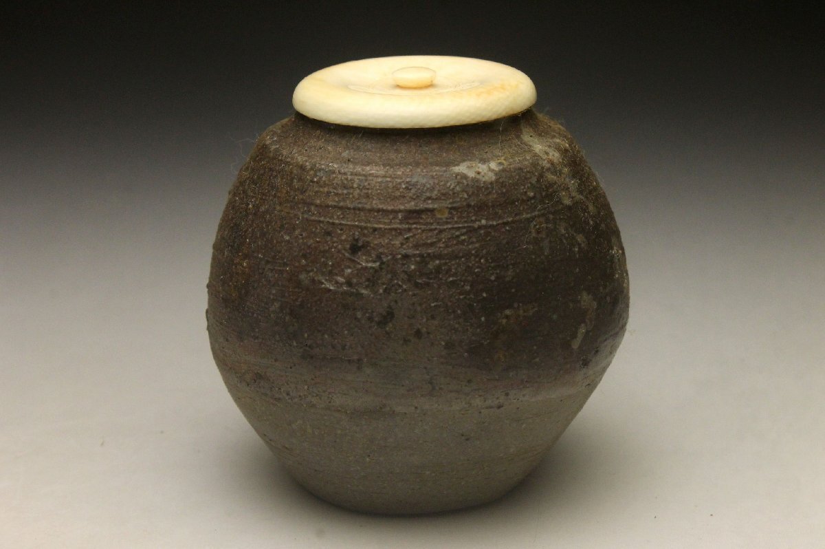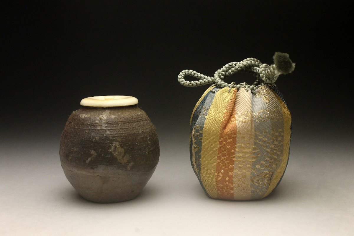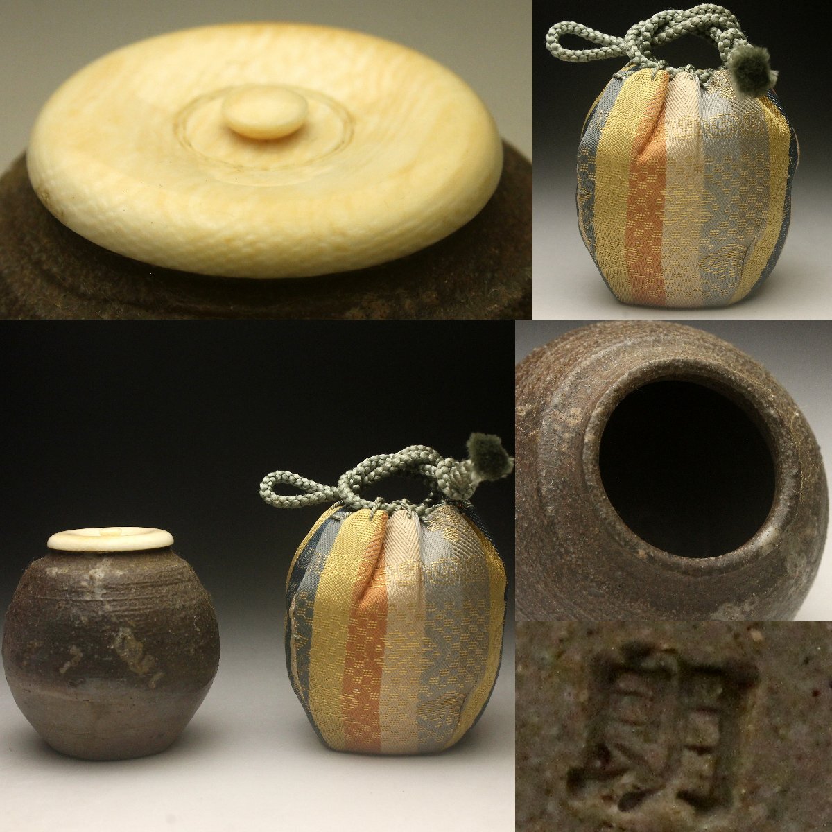 【余韻】 時代物 作家物 朗銘 茶入★蓋付 仕覆 検 上口愚朗? 茶道具<同梱可>