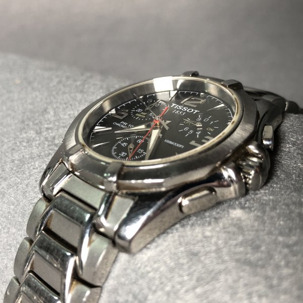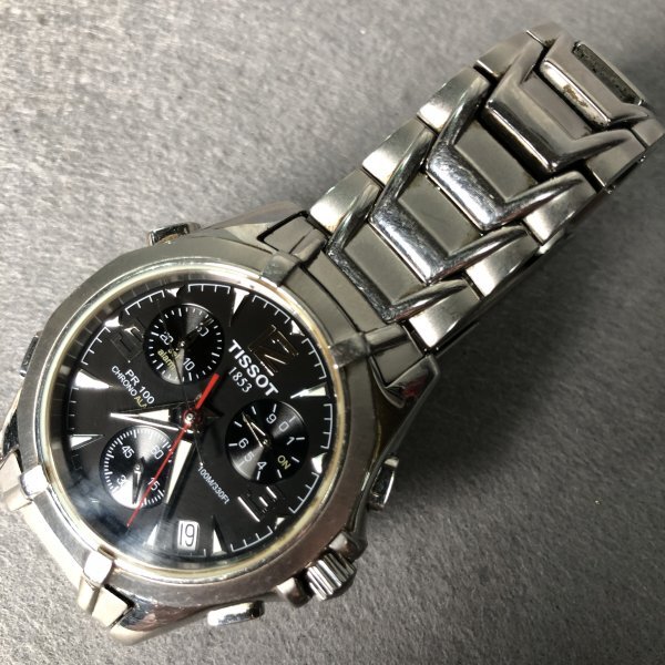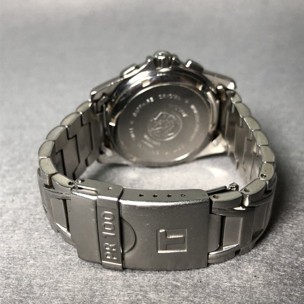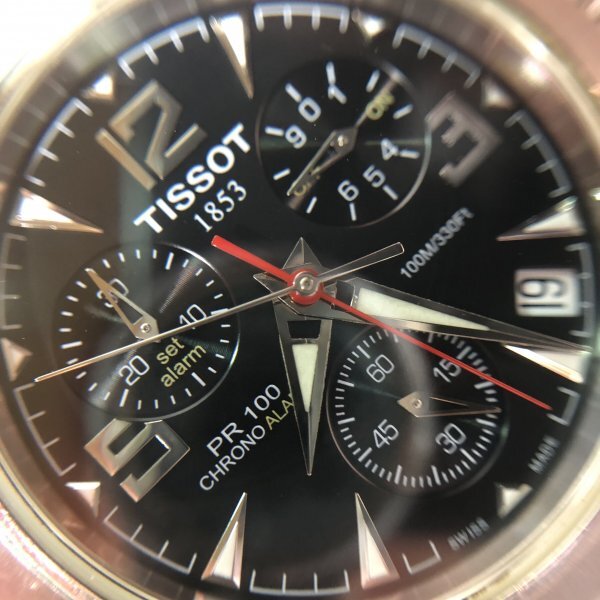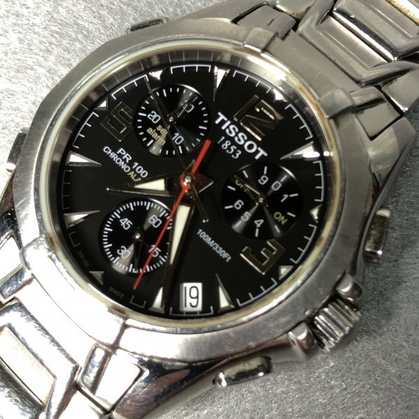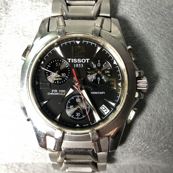 ▽▼ TISSOT ティソ PR100 Alarm Chronograph アラーム クロノグラフ シルバーカラー 黒文字盤 Quartz クォーツ メンズ 腕時計 ジャンク