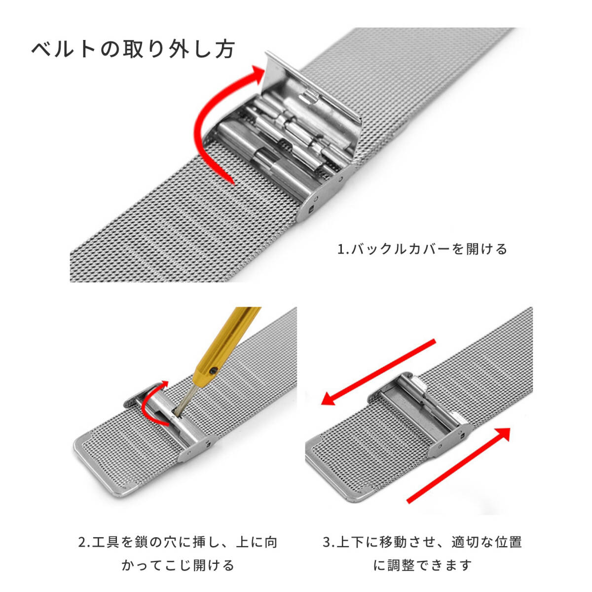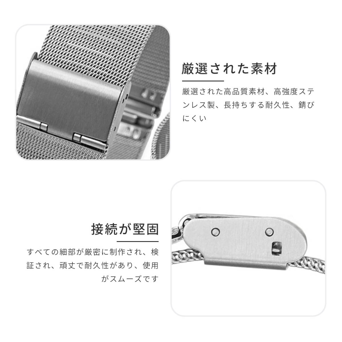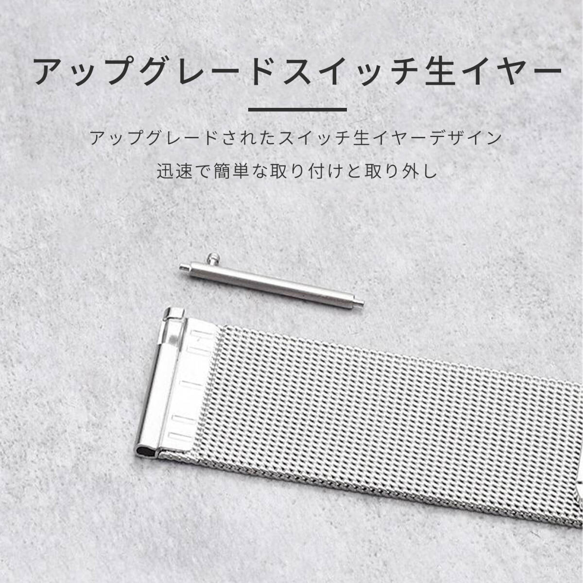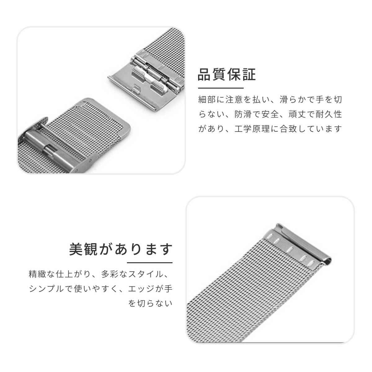 | この商品について | 1.【快適な装着感】柔らかく手首にフィットする素材なのでストレスフリーな装着感です。 2.【高品質素材】ステンレス鋼製、耐腐食性、耐摩耗性。 3.【バックルデザイン】バックルデザインは使いやすく、快適に着用できます。 |