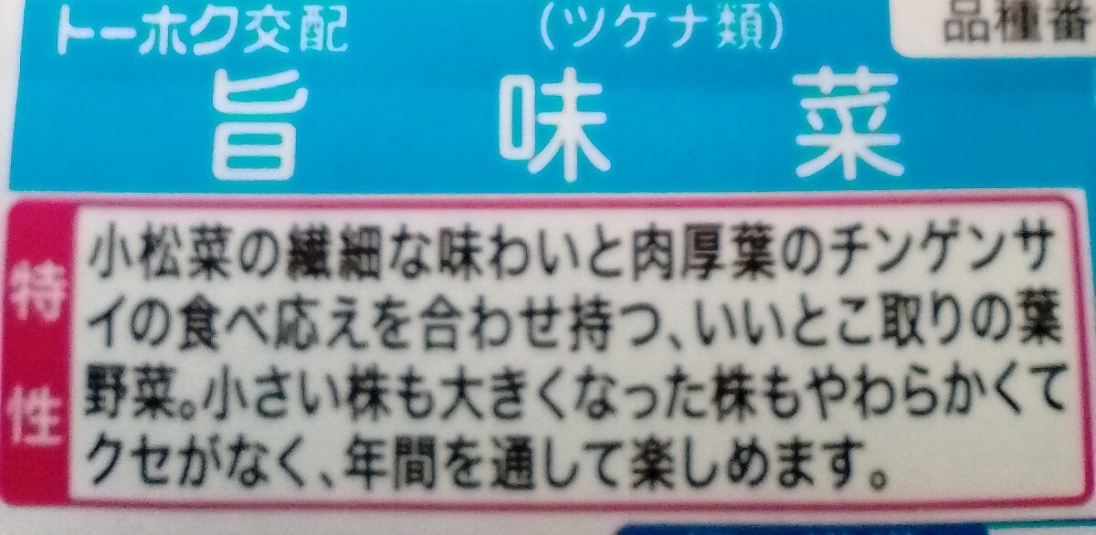 旨味菜 うまみな つけな類 小松菜とチンゲンサイのいいとこ取り 種子 約50粒