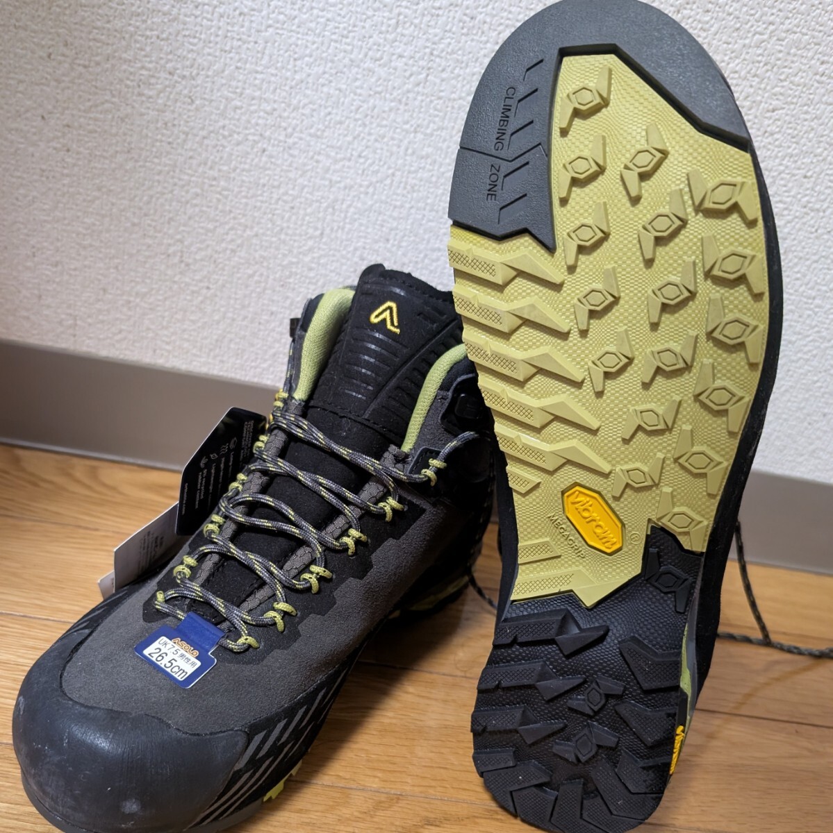 ■モノは、アプローチシューズ。まあまあソールが硬くてクライミングゾーンもあります。他社と比較して軽量です。