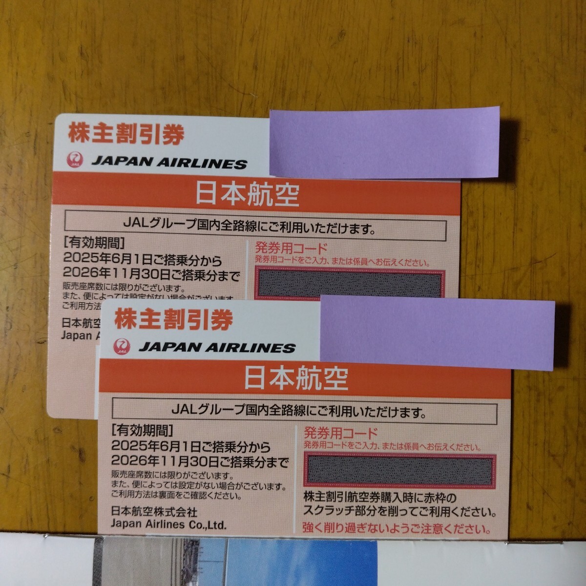 JAL 株主優待券 2枚 2026/11/30