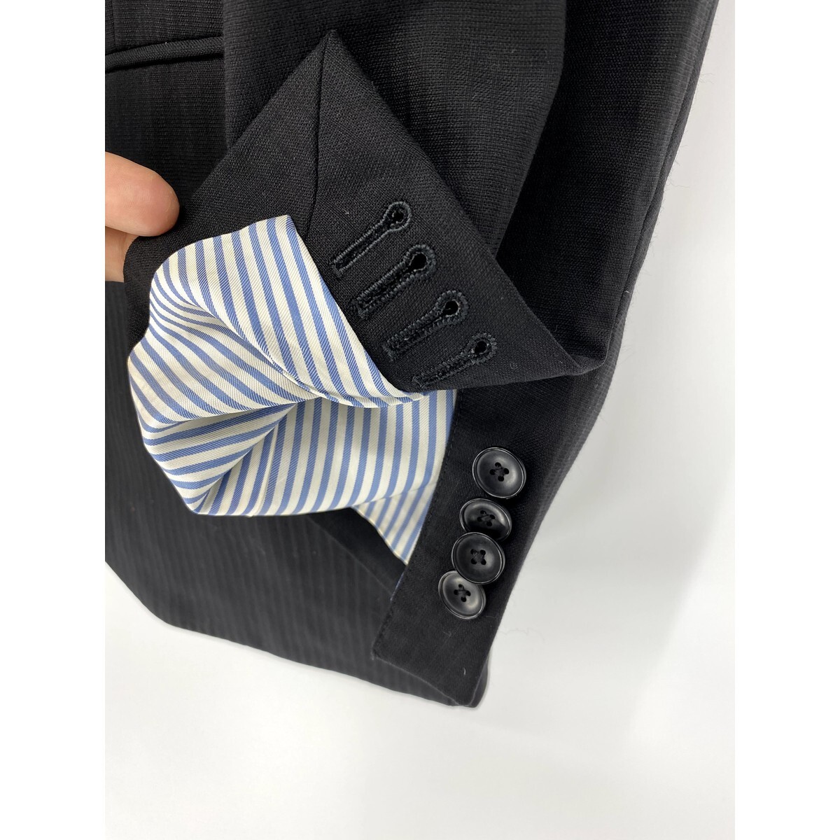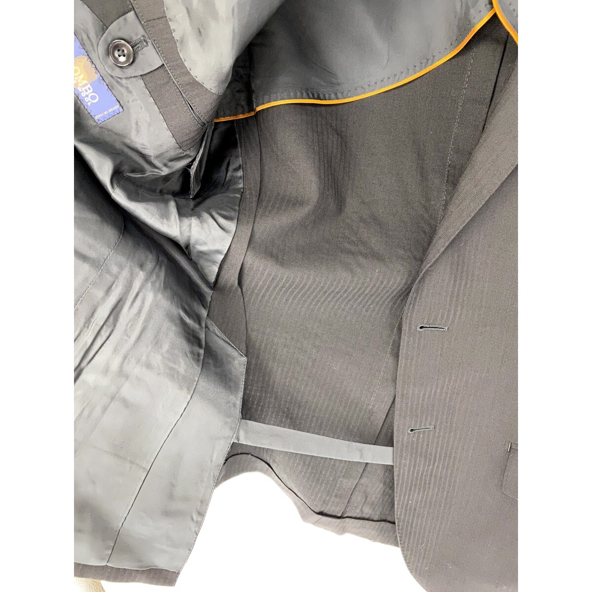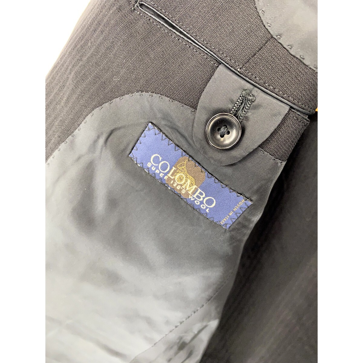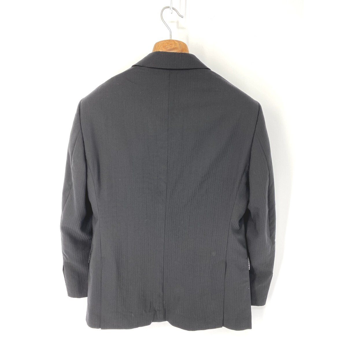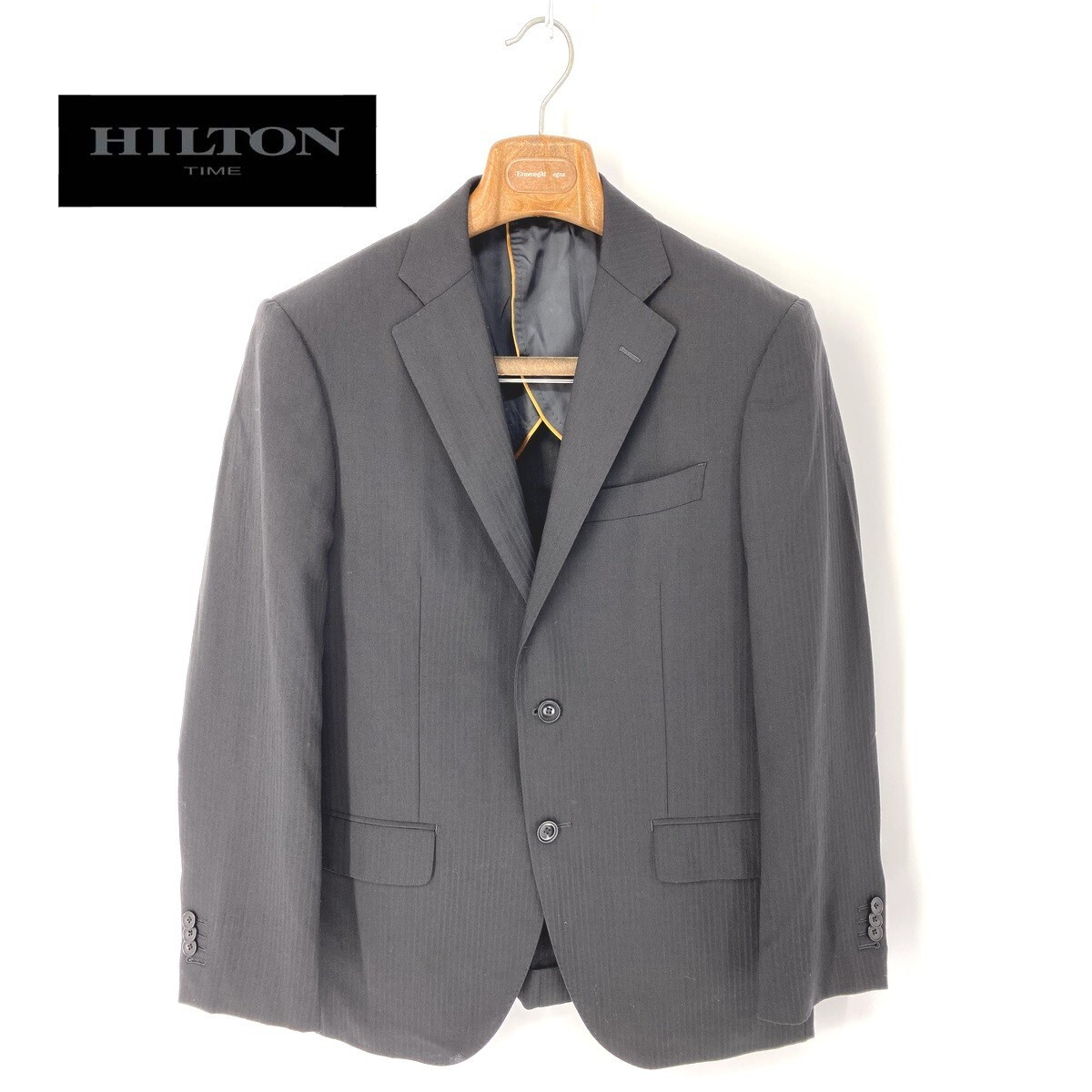 A6573/美品 背抜き HILTON ヒルトン COLOMBO コロンボ SUPER130s' ウール ストライプ テーラード シングル2Bジャケット 165 A4 黒/メンズ