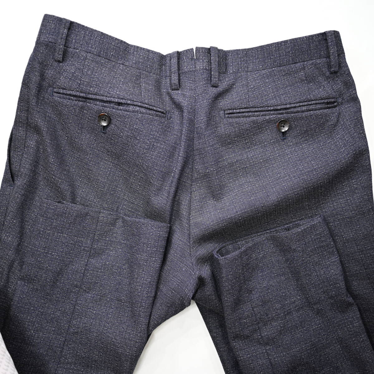 ウエスト上辺幅38cm、股下74cm、腿幅(付け根)30cm、裾幅17cm(裾折り返し9cm)
