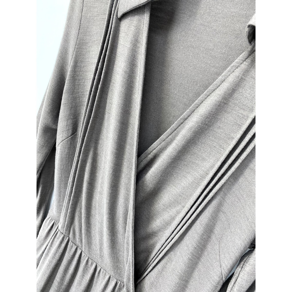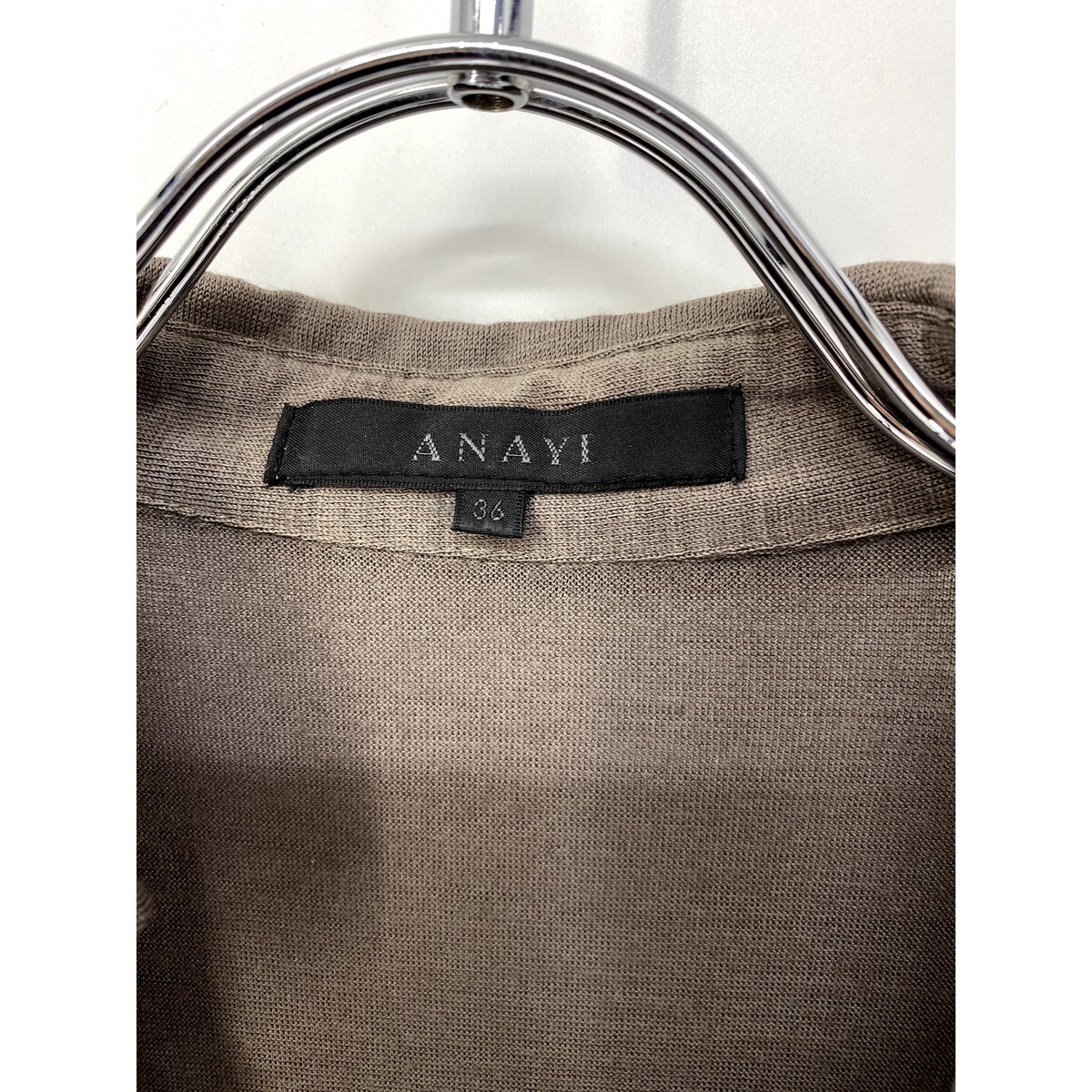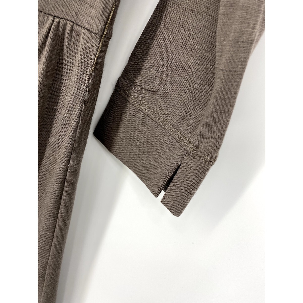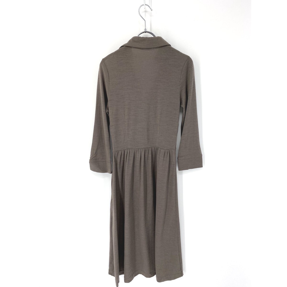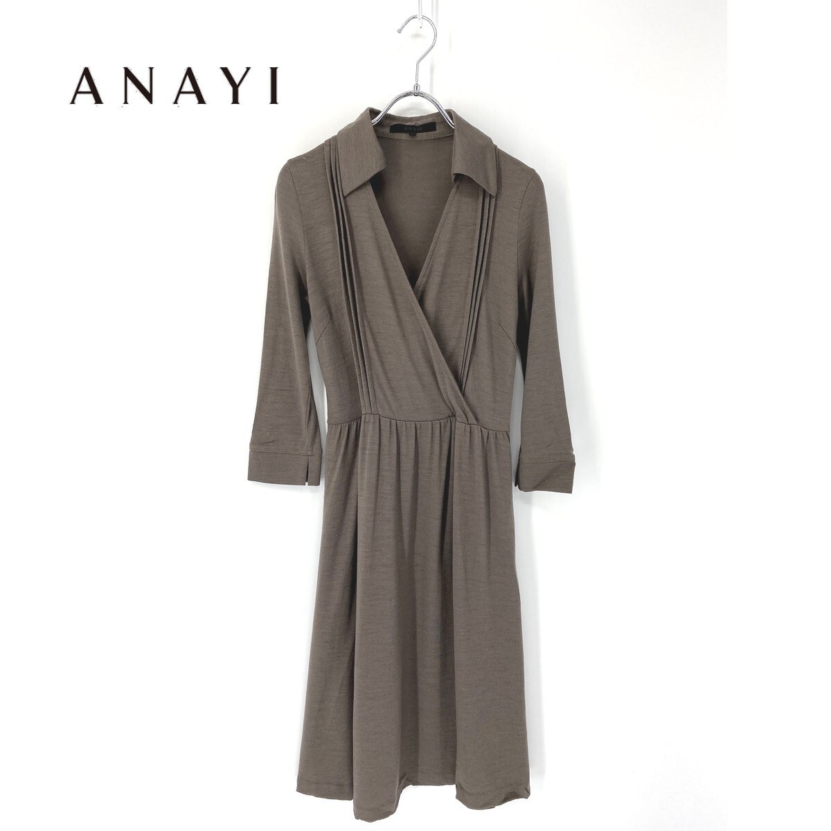A6356/美品 春夏 ANAYI アナイ ウール ギャザー プリーツ Aライン ドレス 長袖 ロング ミモレ丈 マキシ丈 ワンピース 36 茶/レディース