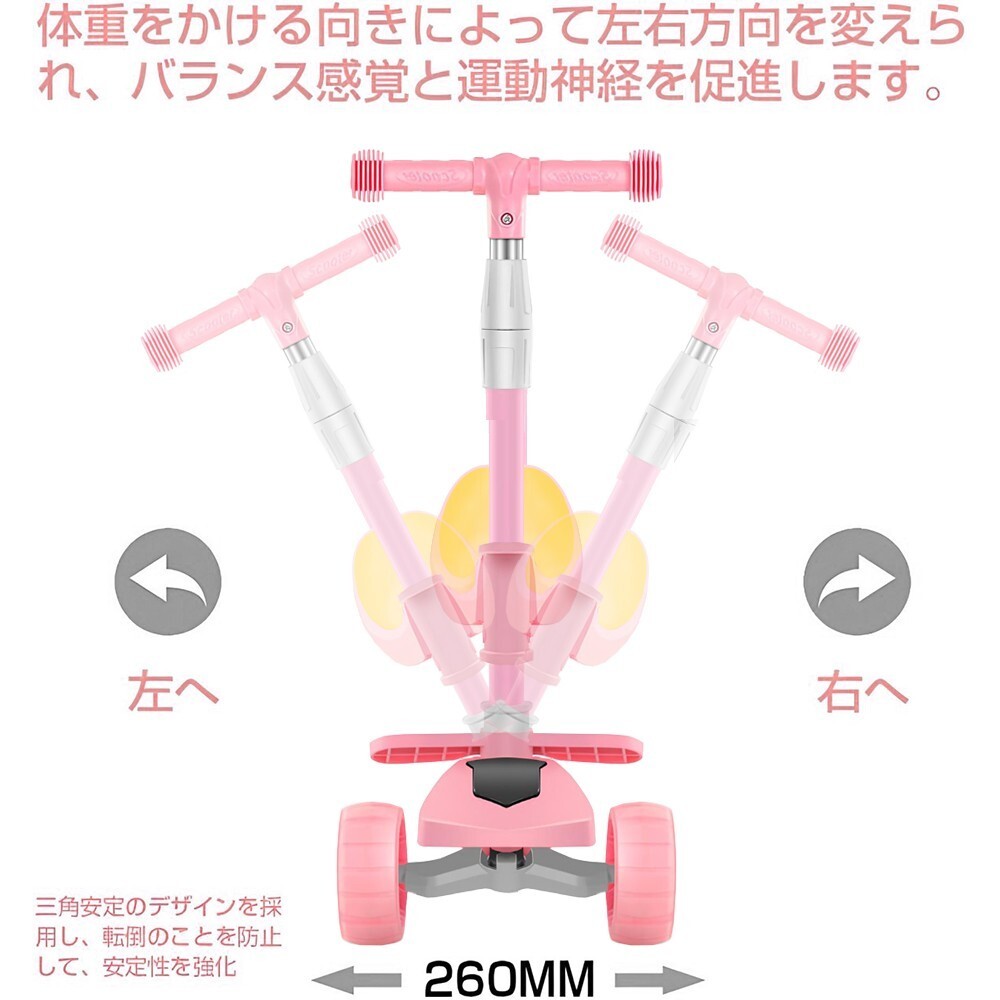 【商品説明】 商品仕様 --------------- 商品寸法: 長さ:60cm 幅:26cm 高さ:62cm/67cm/72cm/77cm(折り畳み時:15cm) デッキ幅:12.5cm 椅子地上高:27cm 前輪:直径12cm、幅5cm 前輪:直径8cm、幅5cm 重量:3kg 本体耐荷重:100kg 椅子耐荷重:25kg 材質:プラスチック、アルミニウム合金 セット内容:本体 選択形式:ピンク色(pink)/ブルー(blue)/レッド(red) 【商品特徴 】 ●【4段階調節可能】 子供の身長により、62cm、67cm、72cm、77cmの4段階に調節できます。適用年齢:3歳以上のお子様をお勧めいたします。 ●【LED 光るホイール・ブレーキ付き】 バッテリーが必要なく、速度によって自動的に明るくなったり暗くなったりして、5cm PU車輪を採用、 また、後輪についているフットブレーキを片足で軽く踏むことで、スピードを簡単に調節でき、安全性とオシャレを両方も実現します。 ●【人間工学設計】 ハンドルは人間工学に基づいた、T字型バーグリップがあるので、しっかりとした快適性と耐性があります。 リーンステア機能付きで、体重をかける向きによって左右方向を変えられ、バランス感覚と運動神経を促進します。 ●【折り畳み式】 場所を取らなくてコンパクトなので、玄関などの室内保管や車のトランクに置いても問題ないです。 ●【2way乗り方】 シートの設計で、子供たちはペダルの上に座ることができます。 シートの取り外しも簡単、子供の好きによって簡単に変換でき、両方も楽しめます。 【購入時のご注意】 ◆保証書無しで1年保証です! ◆工場出荷前に全商品確認を行っております。 ◆保証の際に生じる送料はお客様お負担となります。 ※着払いでの発送は受取ることができませんのでご了承ください。 ◆初期不良の確認のため、必ず確認を行ってください。 |