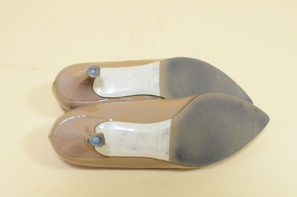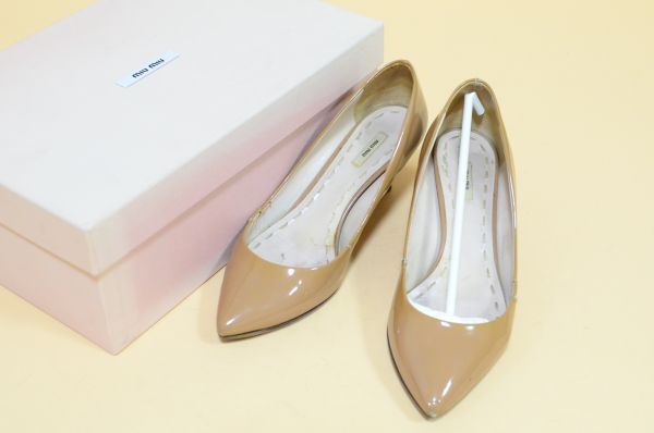 靴C/miu miu エナメルパンプス パテント プレーントゥ茶色35 1/2