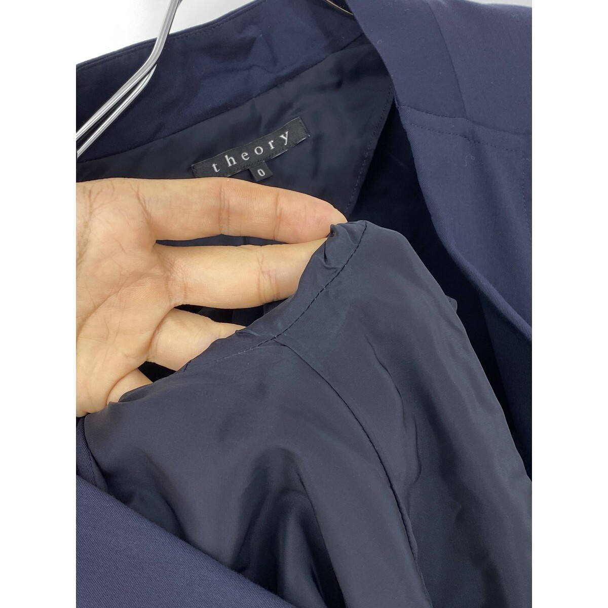 B0153/極美品 theory セオリー レーヨン ストレッチ 変形 オシャレ テーラード ダブル フォーマル ジャケット0 S M 紺 レディース ビジネス