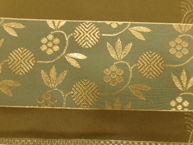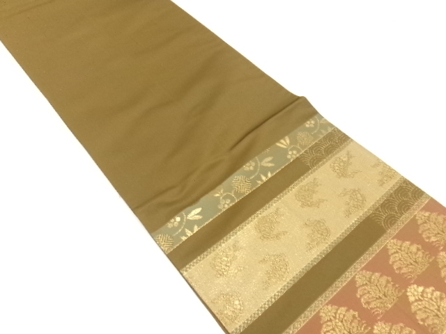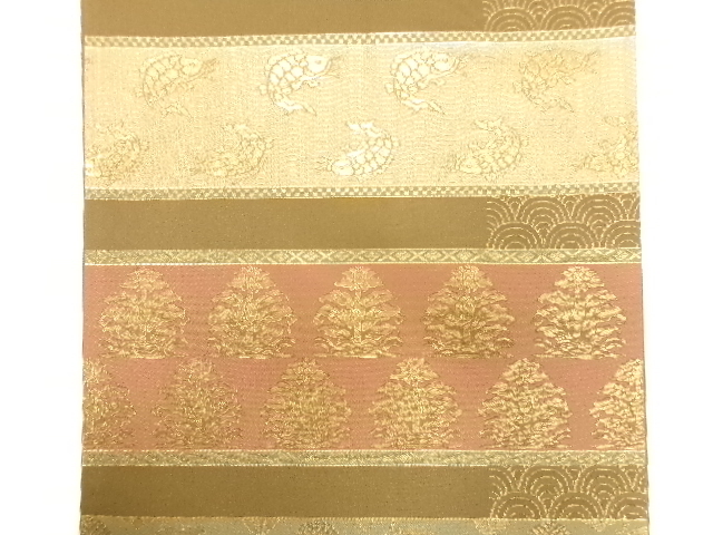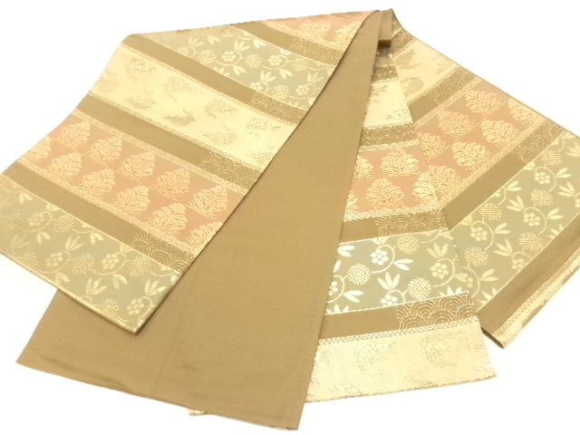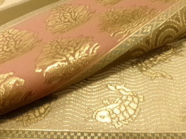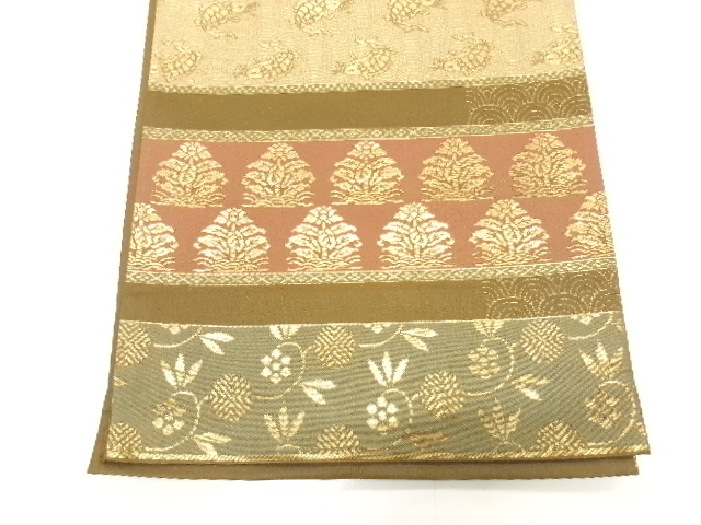 美品 横段に名物裂織り出し 振袖用 袋帯 (AJG1K-012)