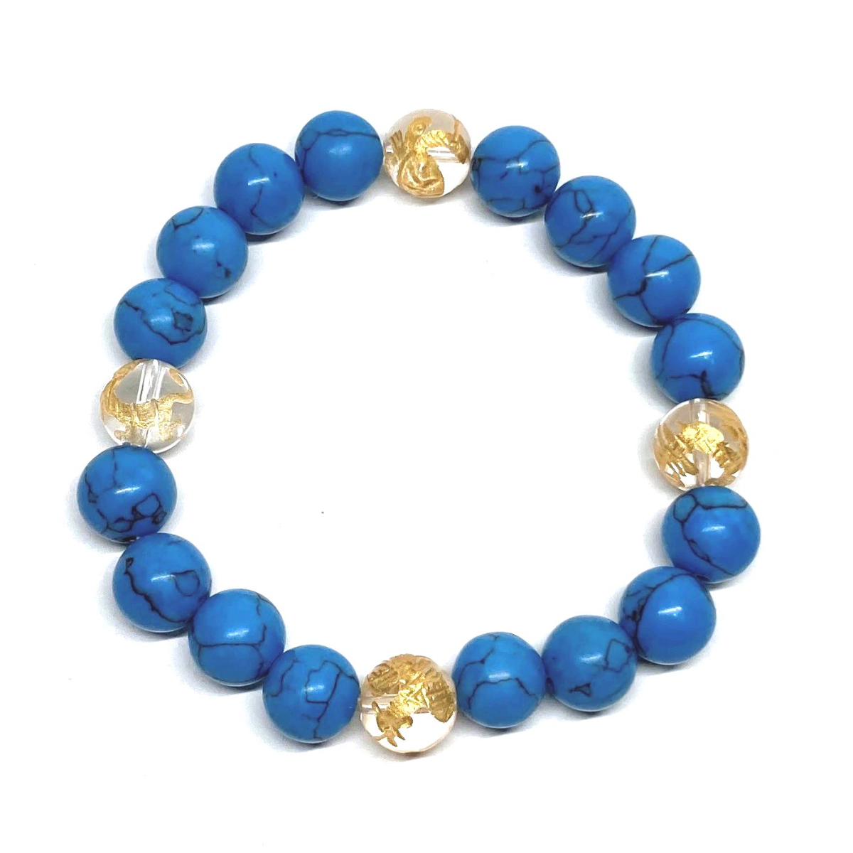 10mm 四神獣金彫水晶×ターコイズ パワーストーン ブレスレット天然石 運気上昇 開運 金運 恋愛運 青龍 白虎 玄武 朱雀 #1 ☆