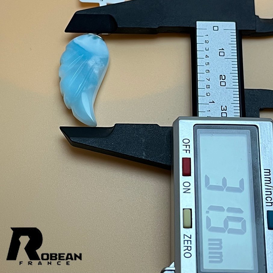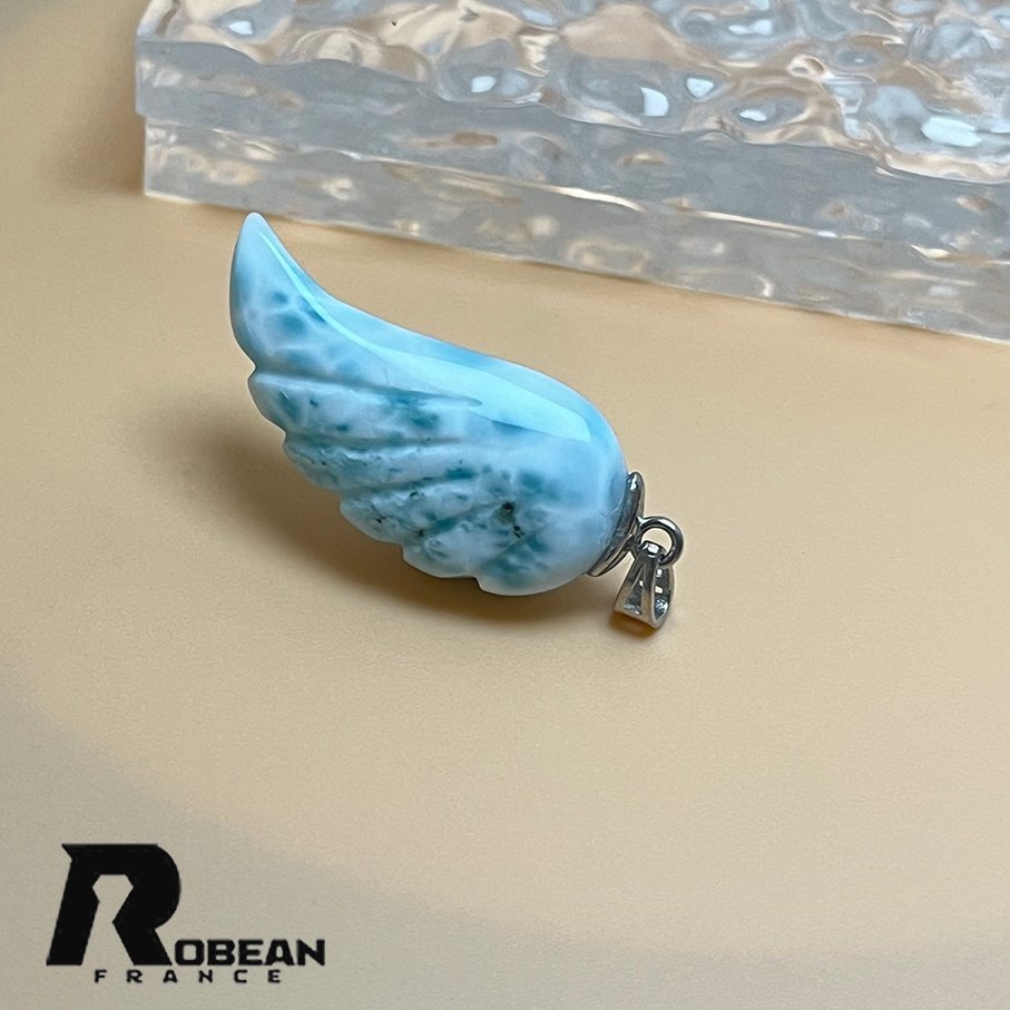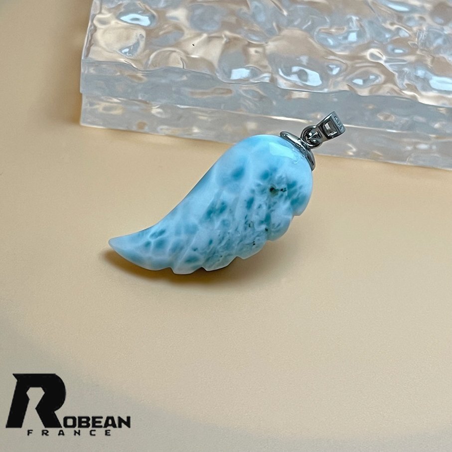 上級 EU製 定価7万円★ROBEAN・アイスラリマー・ペンダント★パワーストーン アクセサリー 天然石 翼 羽根 約31.9*14.7*7.9mm