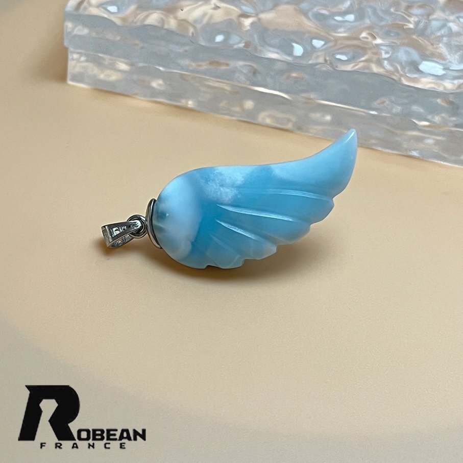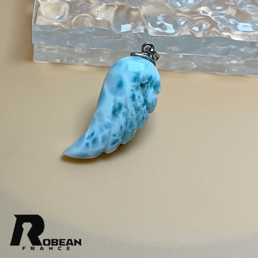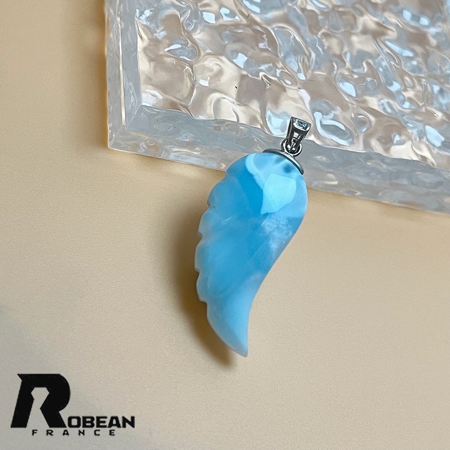 上級 EU製 定価7万円★ROBEAN・アイスラリマー・ペンダント★パワーストーン アクセサリー 天然石 翼 羽根 約31.9*14.7*7.9mm k1029222