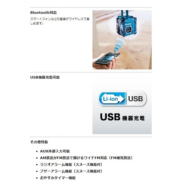 マキタ製の充電式ラジオのMR002GZB(黒色)と、