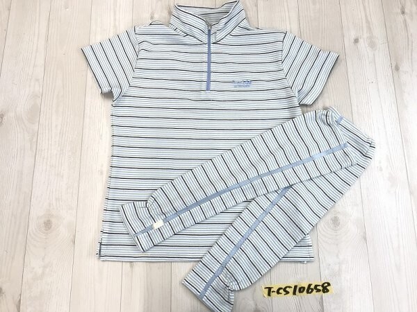 ONSIDE BY PERSON’S パーソンズ レディース アームウォーマー付き ボーダー 鹿の子 半袖ポロシャツ M 青緑 です。