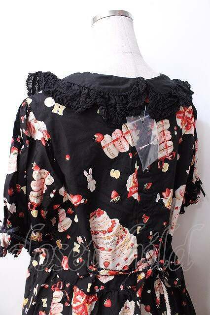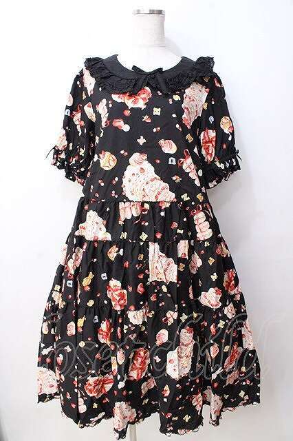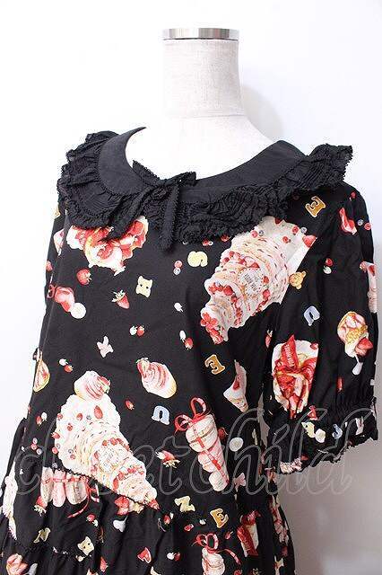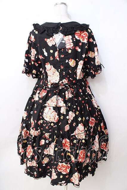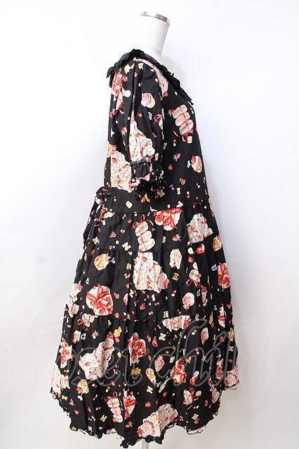 PINK HOUSE / アニバーサリーケーキプリントミディワンピース 黒 Y-25-09-30-013-LO-OP-SZ-ZY