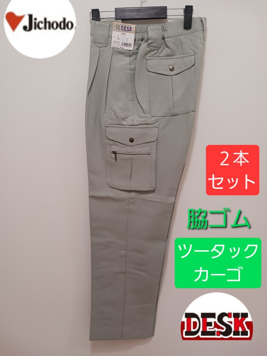 5547 自重堂 DESK 20302|秋冬 ツータックカーゴパンツ|アースグリーン|Mサイズ×2本(W77㎝~82㎝)|新品未使用|脇ゴム|作業ズボン|79㎝対応