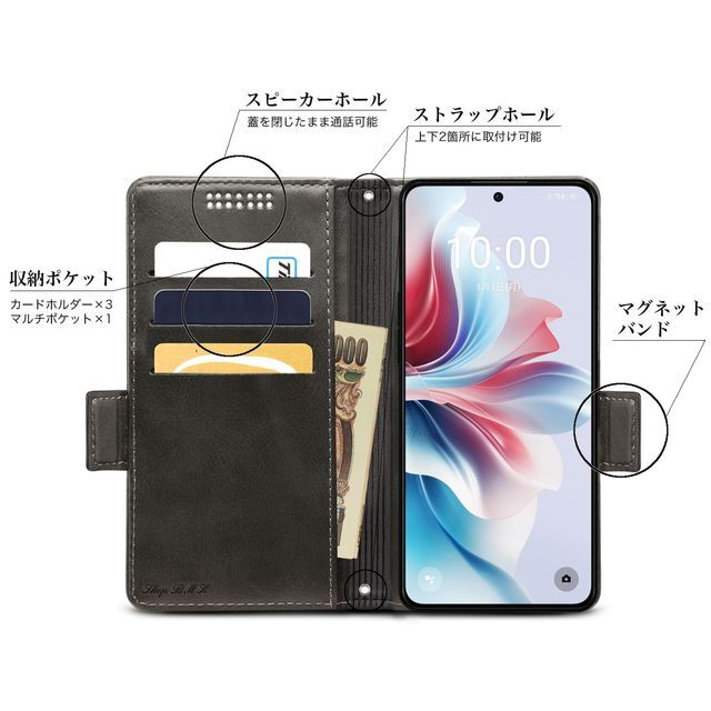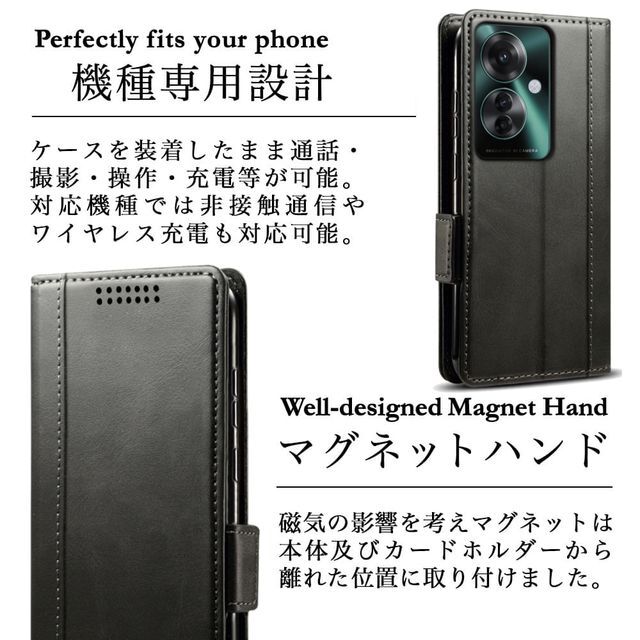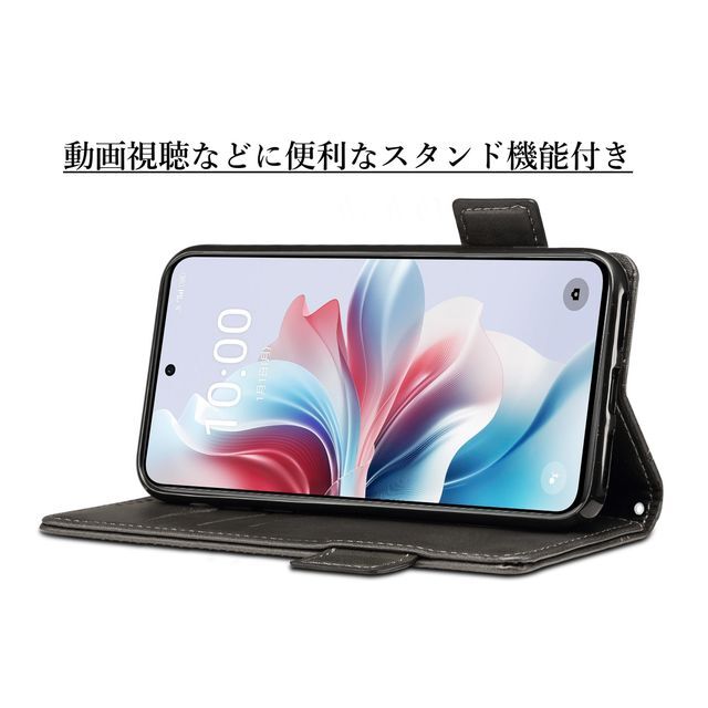 「OPPO Reno11 A」「OPPO Reno11 A CPH2603」「OPPO Reno11 A A401OP」対応の手帳タイプのレザーケース(Black)です。