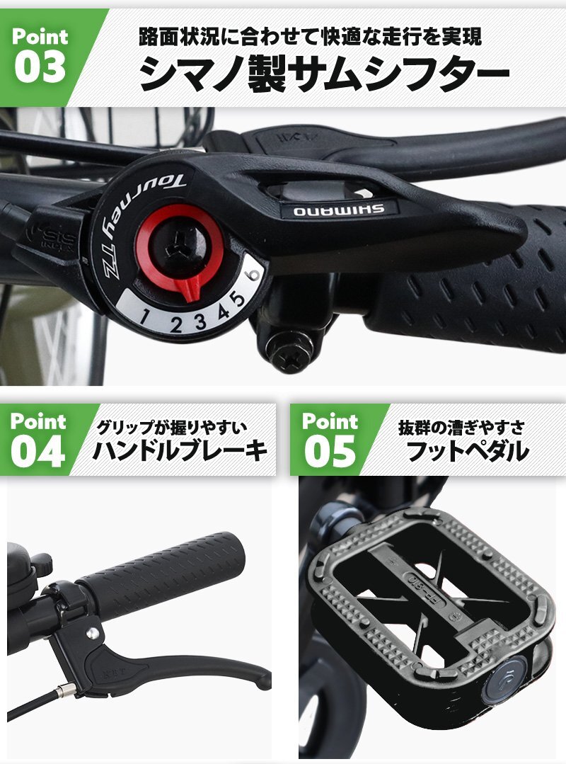 ●信頼のシマノ社製6段変速ギアで、走行性がいい!