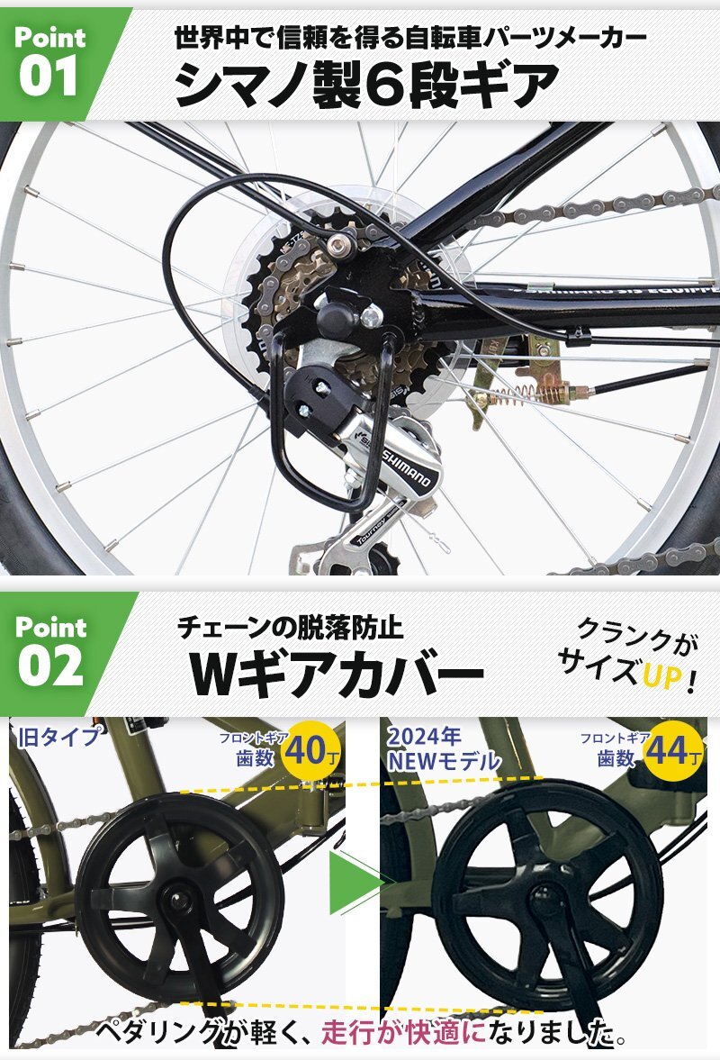New2025モデル フロントバスケット&リアキャリア装備 折りたたみ自転車 20インチ シマノ 6段変速