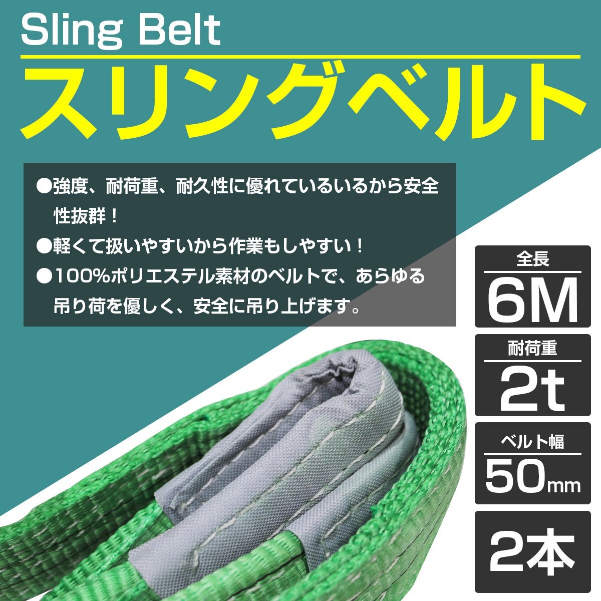 [2本 セット/耐荷2t/長さ 6m] スリング ベルト 吊上げ ナイロン クレーン ロープ 荷吊り 玉掛け 牽引 運搬 2000kg 2トン 幅50mm