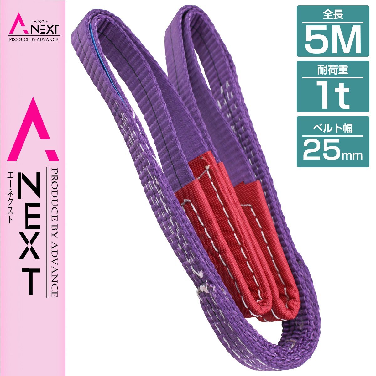 [1本/耐荷1t/長さ 5m] スリング ベルト 吊上げ ナイロン クレーン ロープ 荷吊り 玉掛け 牽引 運搬 1000kg 1トン 幅25mm