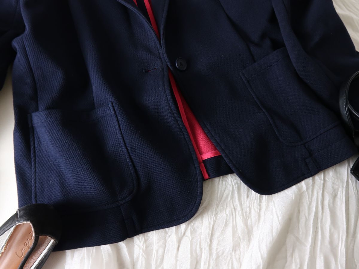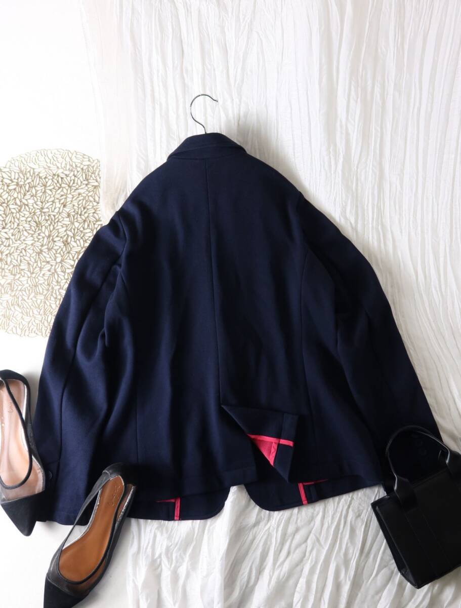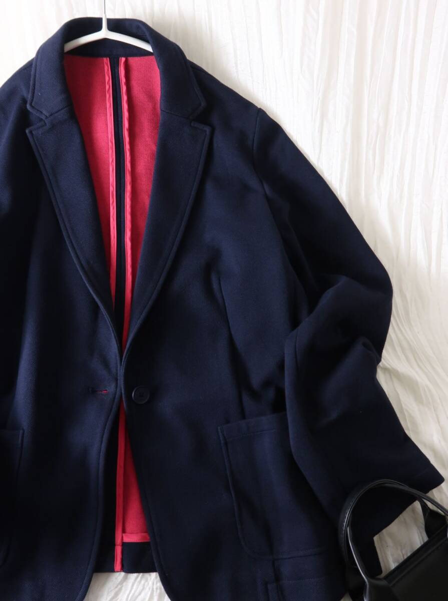 表情のあるダブルフェイス素材を使用しており、裏側の配色がカジュアル感を演出します。