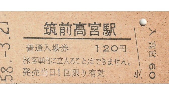 Q176.筑肥線(廃線区間)筑前高宮駅 120円 昭和58年3月21日 営業最終日【2169】