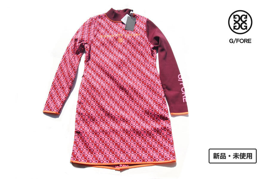 送料無料★新品|未使用|ジーフォア|G/FORE|Gモノグラムパターン インナーパンツ付ニットワンピース|38|ピンク