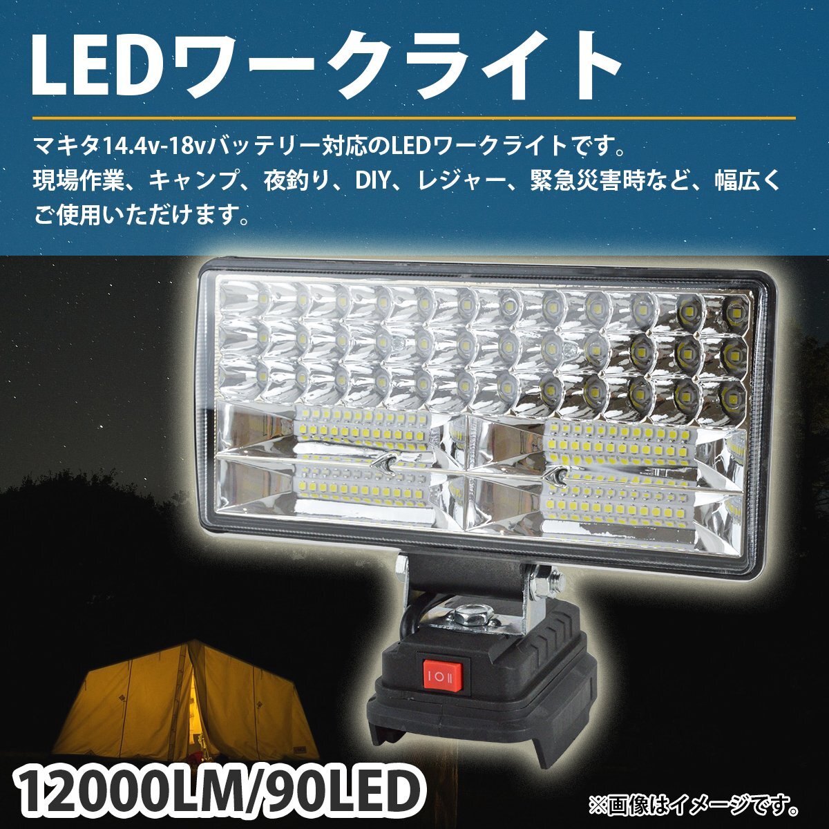 12000LM 90LED マキタ 互換 ワークライト 14.4V 18V 対応 type-C USB 急速充電 作業灯 キャンプ 釣り 集魚灯 投光器 防災 照明