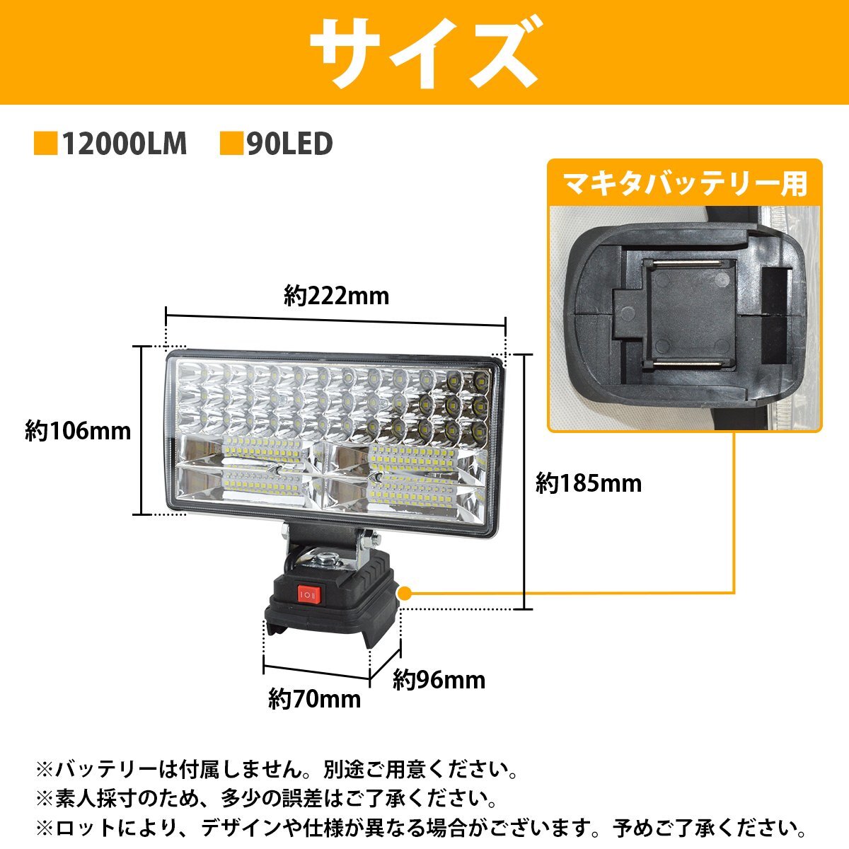 商 品 説 明マキタ14.4v-18vバッテリー対応のLEDワークライトです。