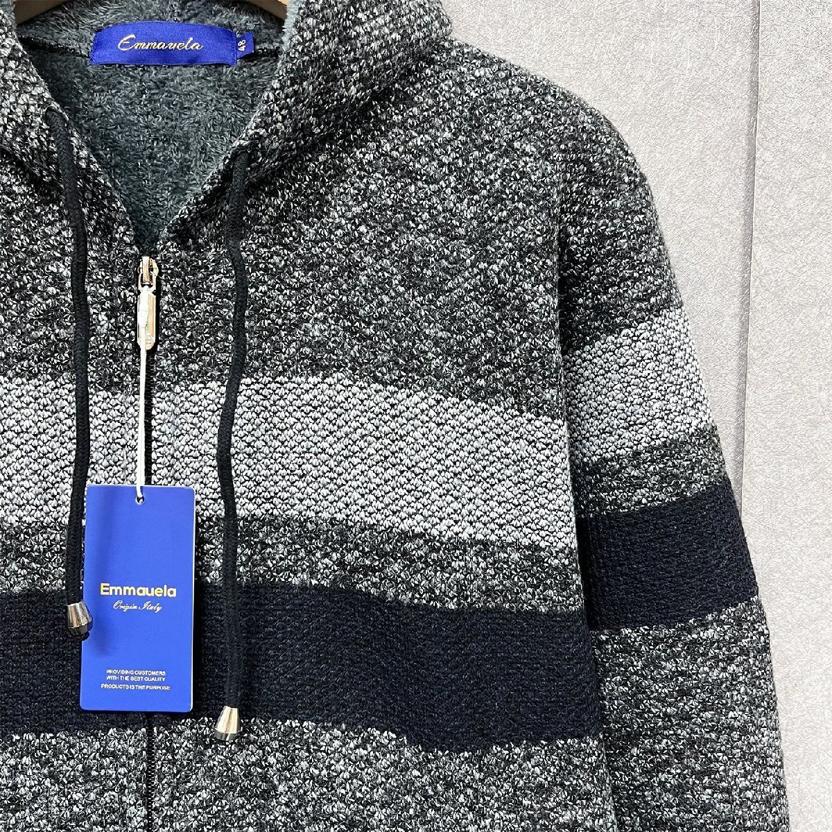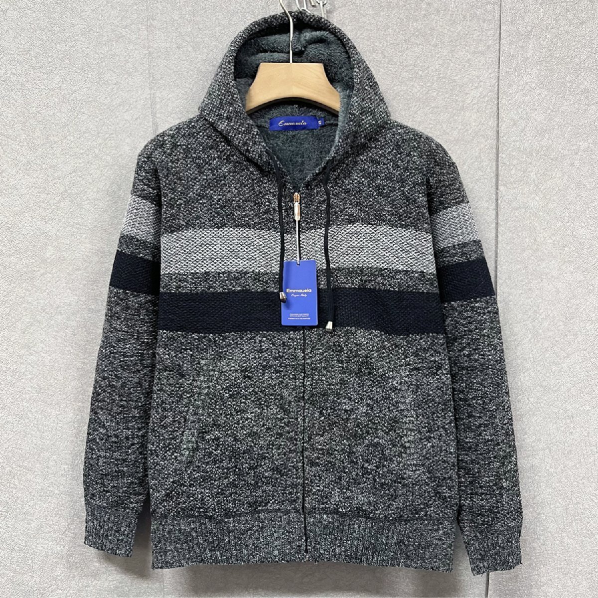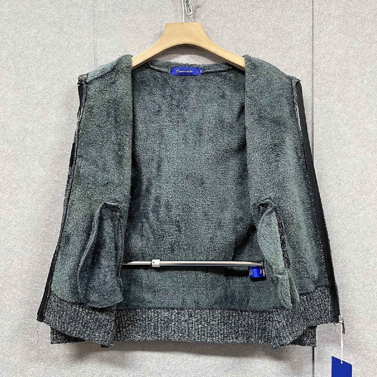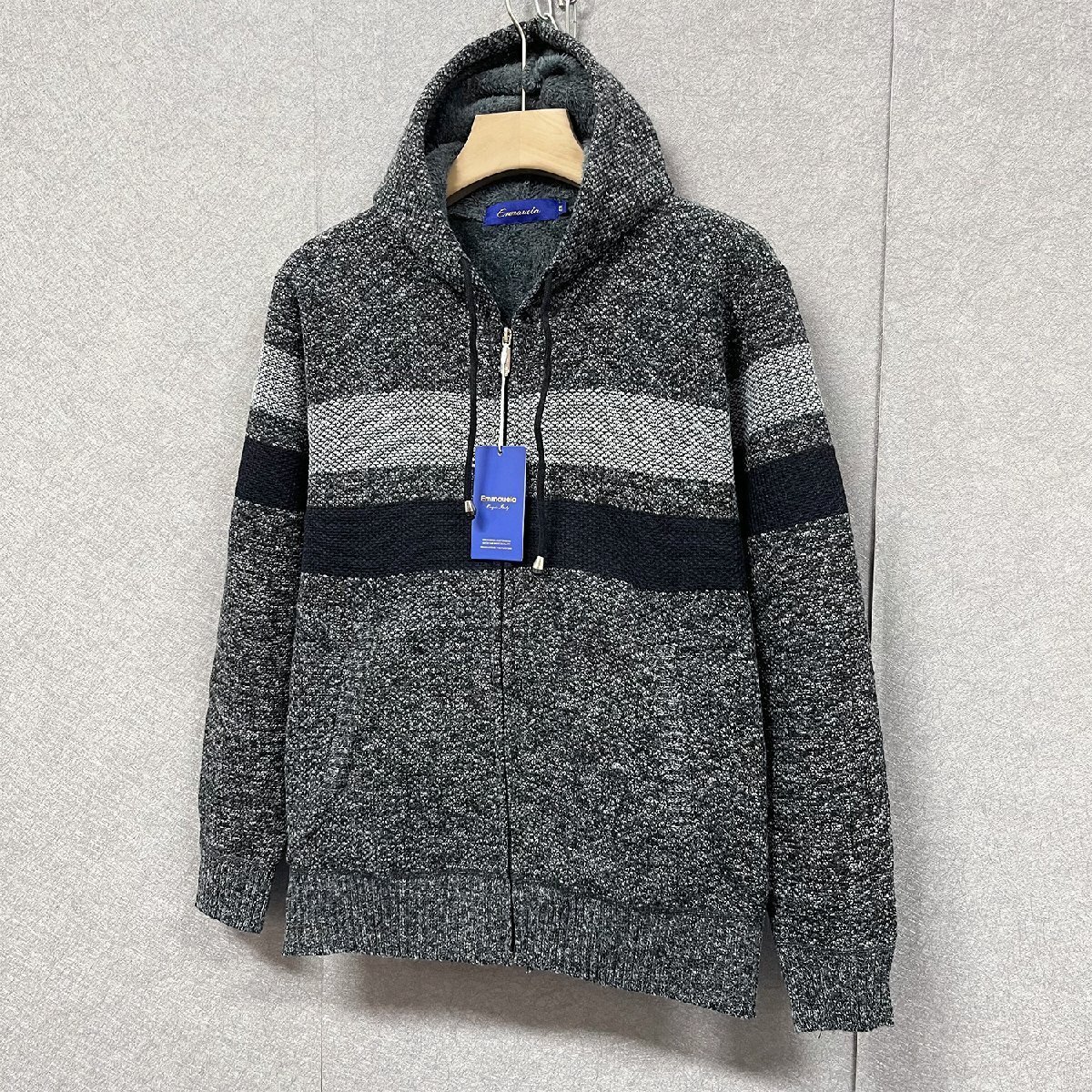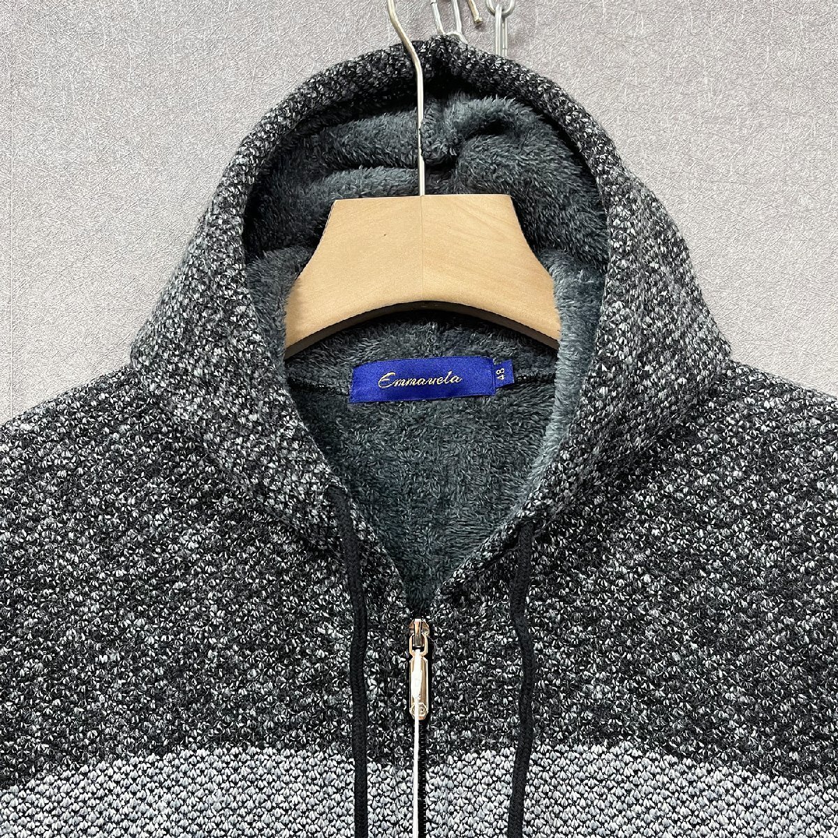 秋冬・ブルゾン 定価6万◆Emmauela・イタリア・ミラノ発◆高級ウール 柔らかい フリース 暖かい 防寒 切替 ニット ジャケット M/46サイズ