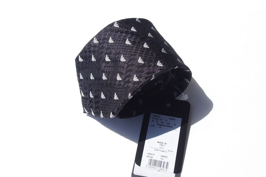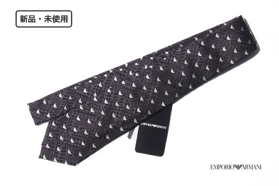 【10月末限定セール】送料無料★新品|未使用|エンポリオアルマーニ|EMPORIO ARMANI|イーグルモチーフ×千鳥格子柄ジャガード織ネクタイ