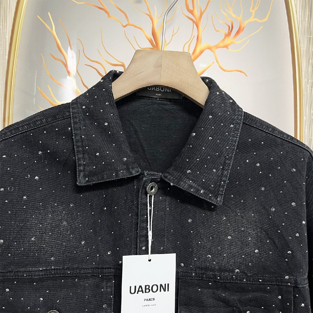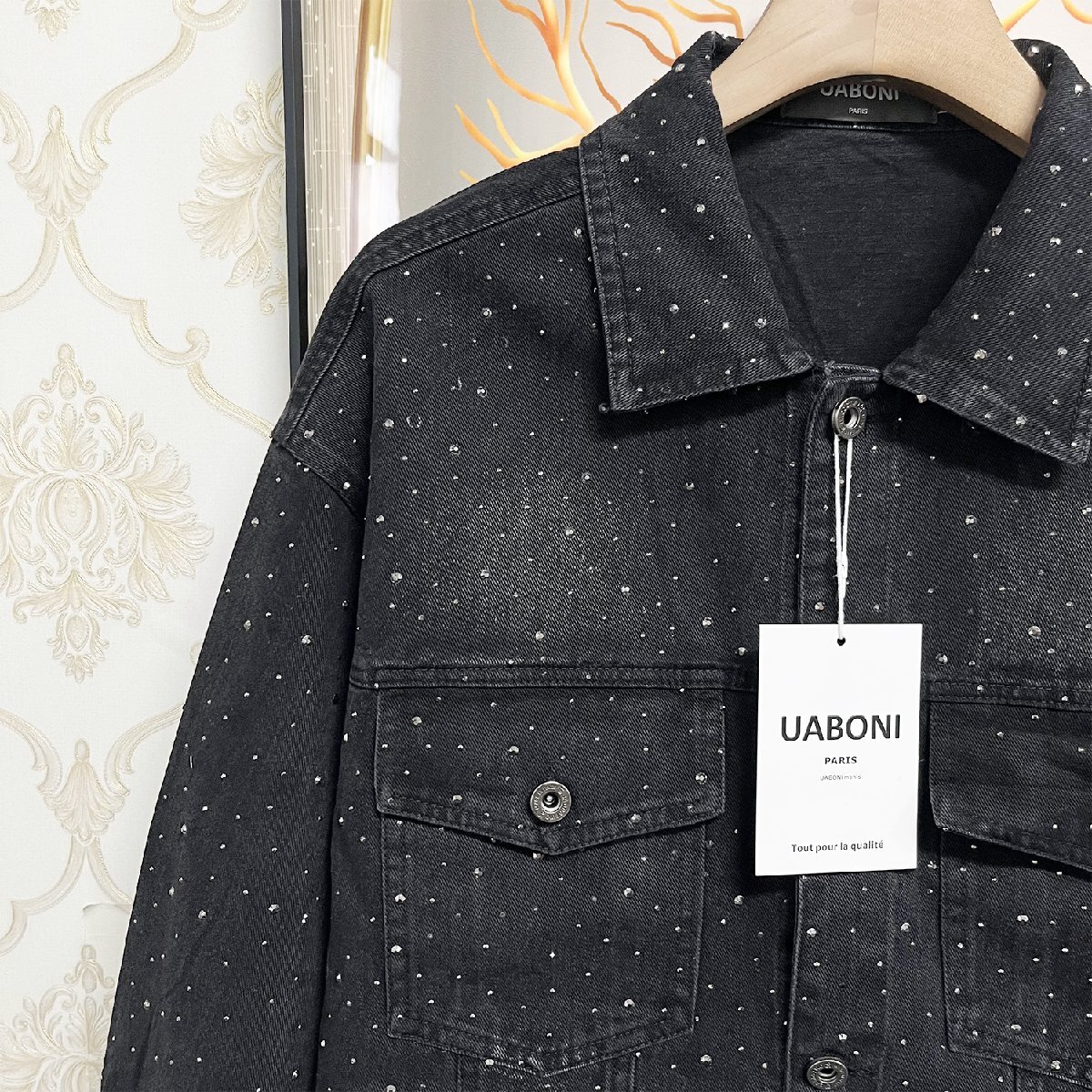 人気EU製&定価6万◆UABONI*Paris*デニムジャケット*ユアボニ*パリ発◆綿混 快適 丈夫 キラキラ オシャレ 長袖 レトロ系 街着 春秋 L/48サイズ