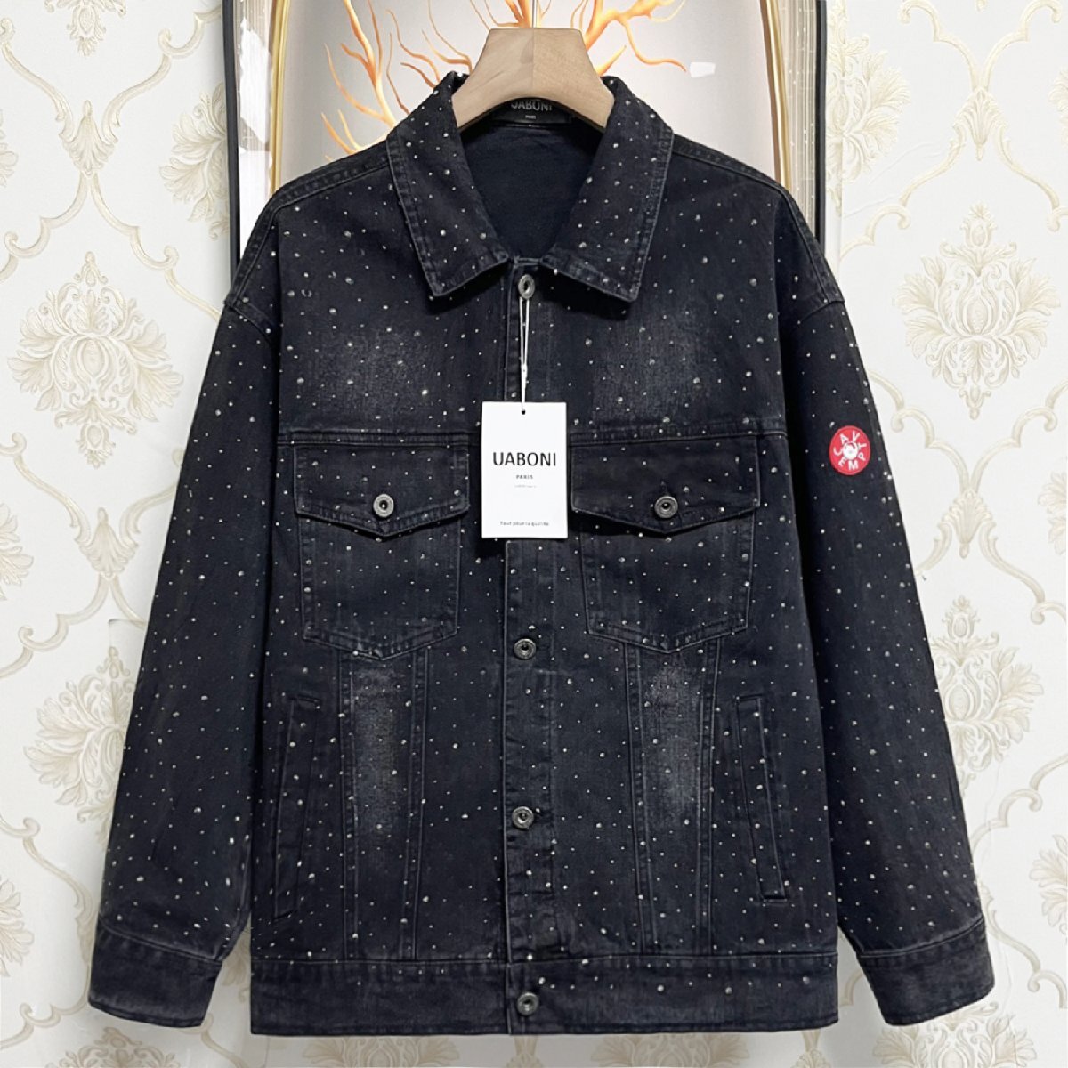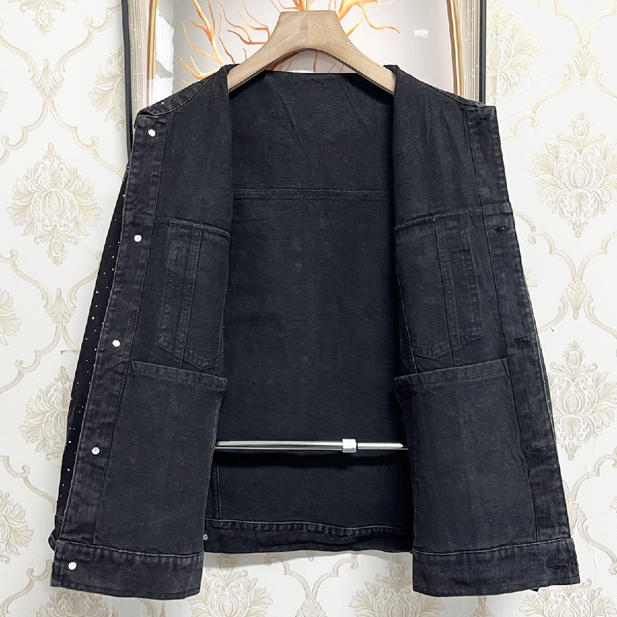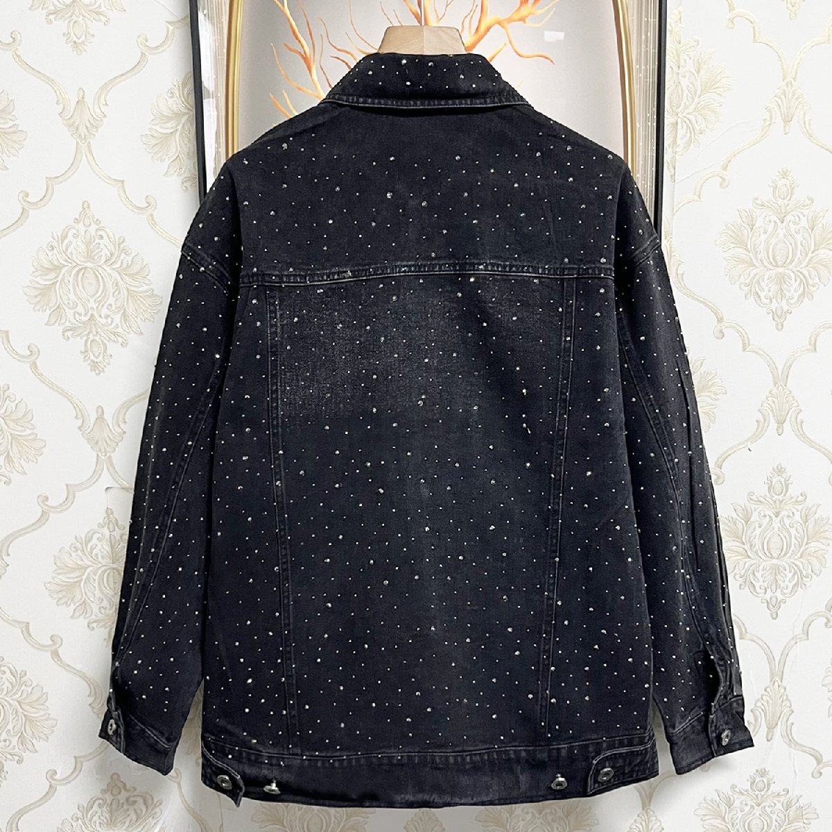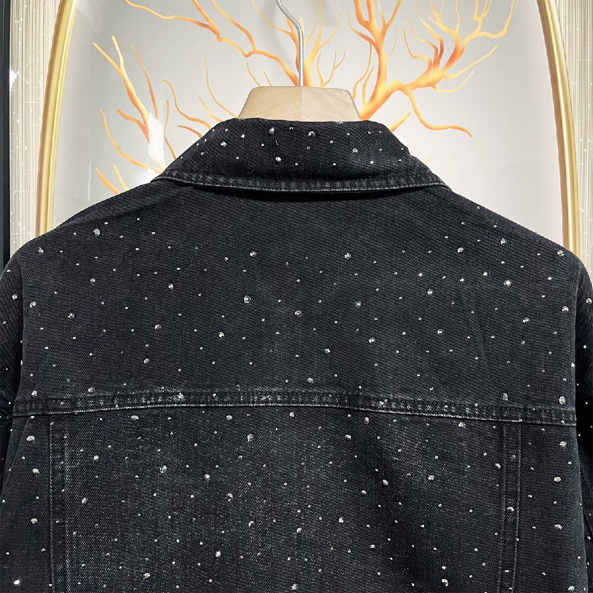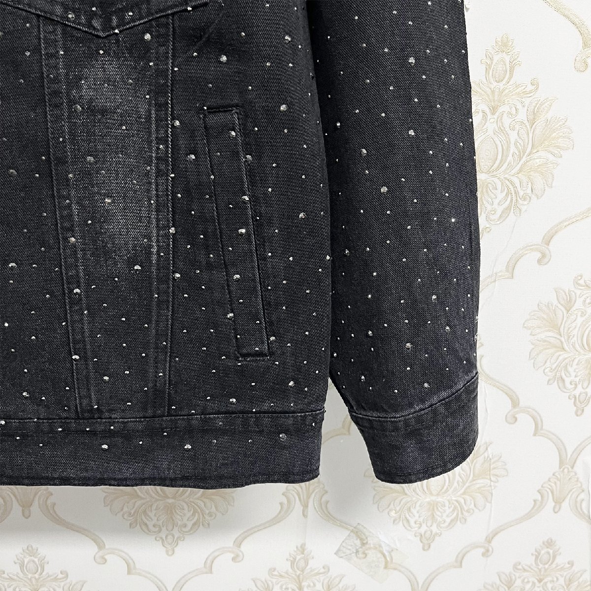 全体に輝くラインストーンをあしらったデニムジャケットが登場。