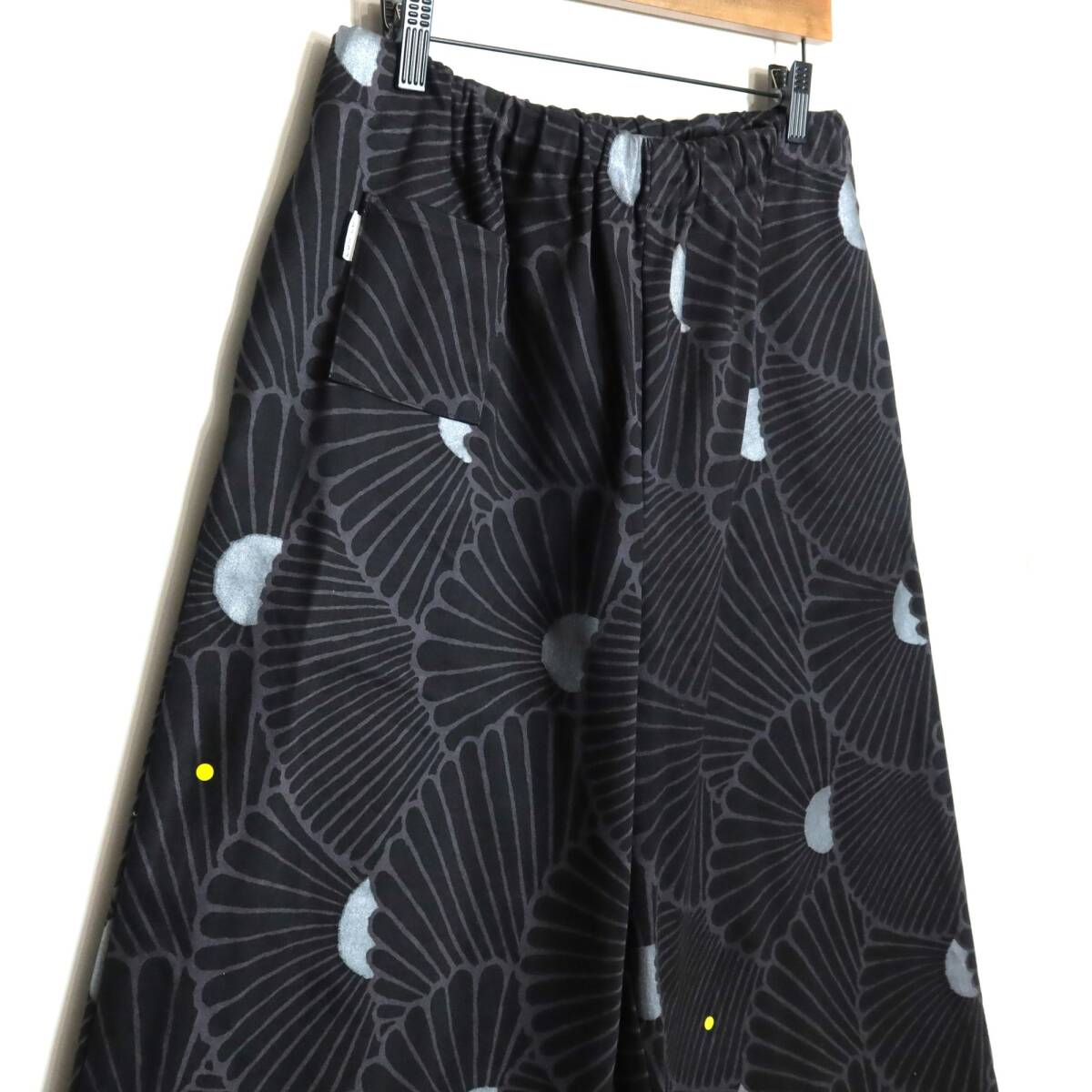 商品説明 | 【実寸約】ウエスト78~ヒップ110股上32股下60太もも幅36.5(cm) 【サイズ表記】 なし。実寸をご参照くださいませ。 【素材】 綿98ポリウレタン2 【状態】普通の使用感のあるお品物 ごく薄いシミ少々ありますが、まだまだきれいに着ていただけるお品です。 【デザイン】黒系 ロングワイドパンツです。 ウエスト総ゴムで着心地もバツグン♪ 厚手のしっかりした素材/菊扇/ポケットあり |