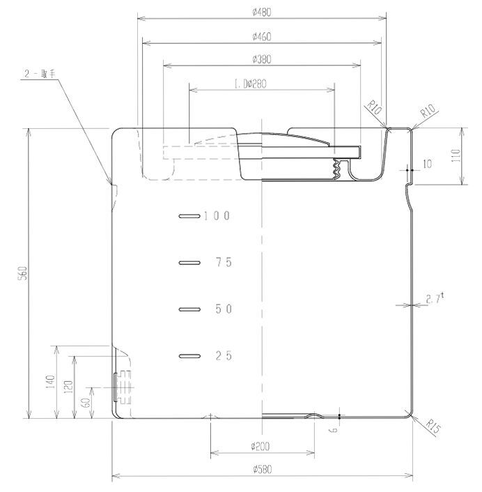 | 品番 | 容量(L) | 外径 | 高さ | マンホール内径 | 肉厚 | 重量(Kg) |