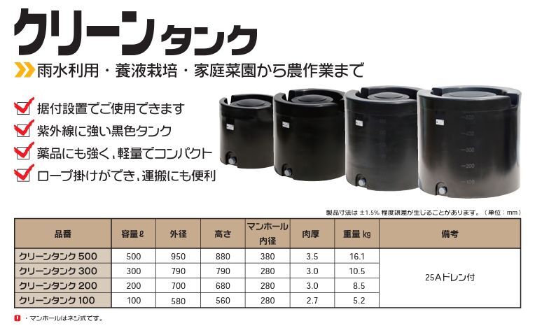 | クリーンタンク 300 | 300 | 790 | 790 | 280 | 3.0 | 10.5 |