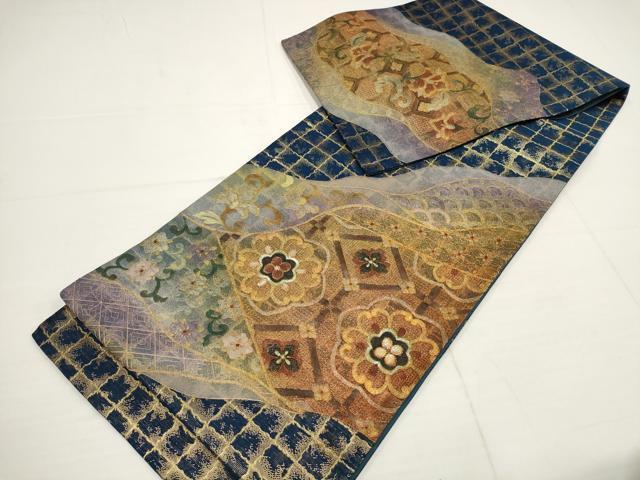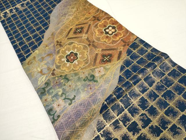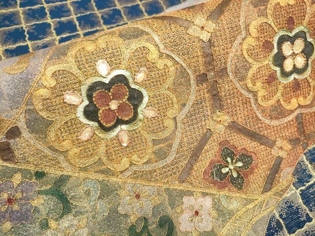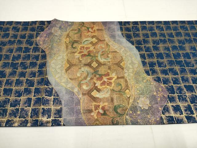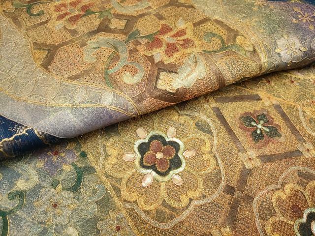 | 【正絹】 状態は締めてはおりますが 特に目立ったシミ汚れなどもなく大変良い状態です。 「螺鈿(らでん)」は、 貝殻の内側の真珠層を薄く切り出して、はめ込む手法です。 奈良時代に唐から螺鈿の技術が輸入されて以来、 真珠層が光線によって、青色やピンク色などの優しい光を放ち、 自然な非規則性が神秘的で日本人の心を惹きつけてきました。 丁寧に、精密に織り出された源氏物語・・・ 実に多彩な彩りは、螺鈿のみ表現できる美しさ 織り螺鈿金細工の染などでは表現できない、 貝殻の持つ自然な光沢がとても美しく、優雅さと華やかさを添えます。 大変上質な逸品になります。 お安く出品致しますので、是非この機会にいかがでしょうか?