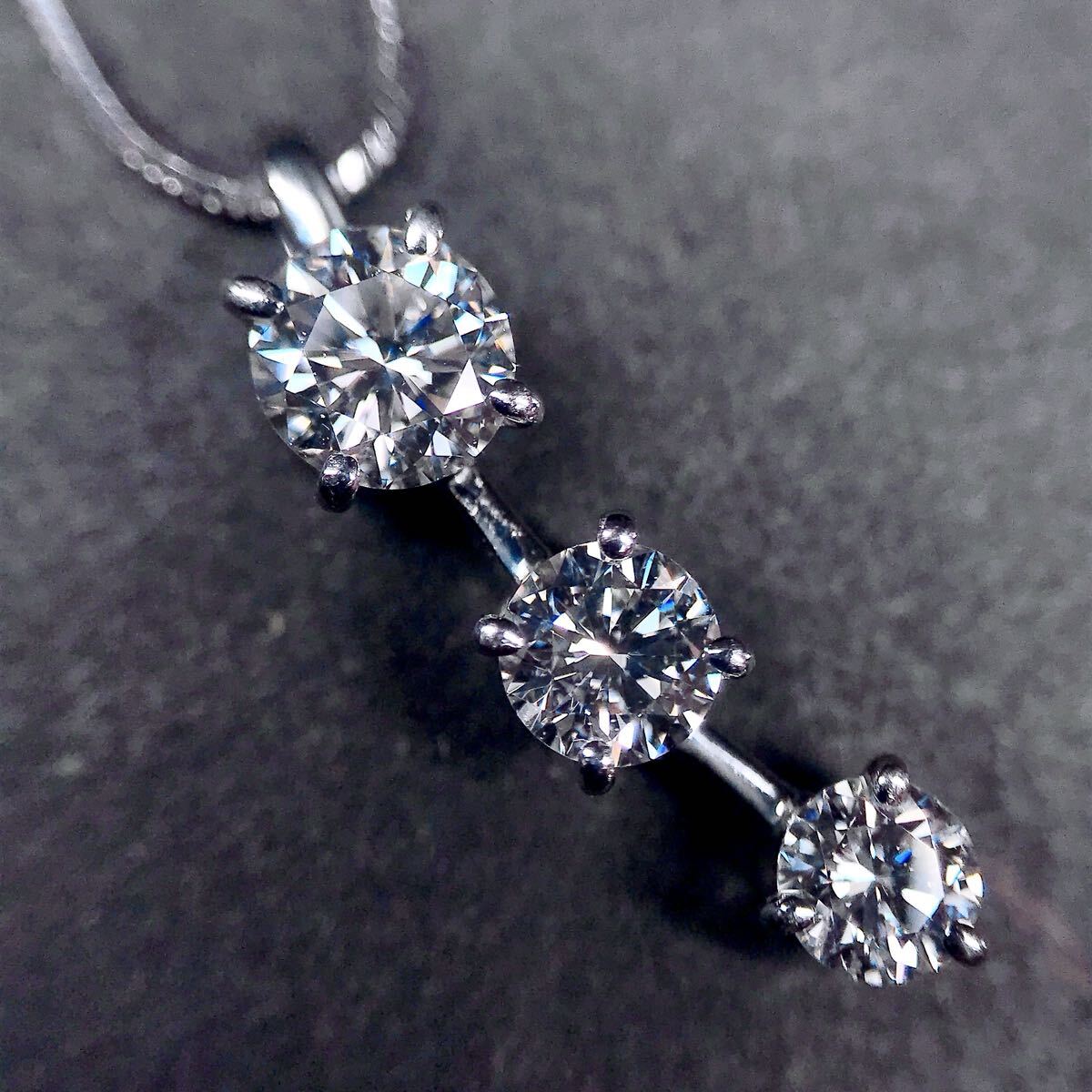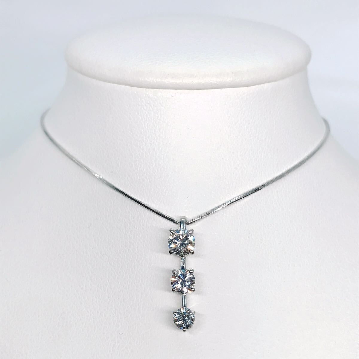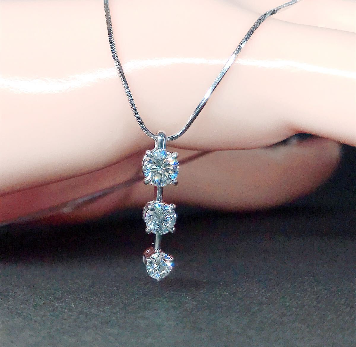 無色透明系の上質なモニッケンダムのダイヤモンドを3石セッティングしたトリロジーデザインのネックレスです。