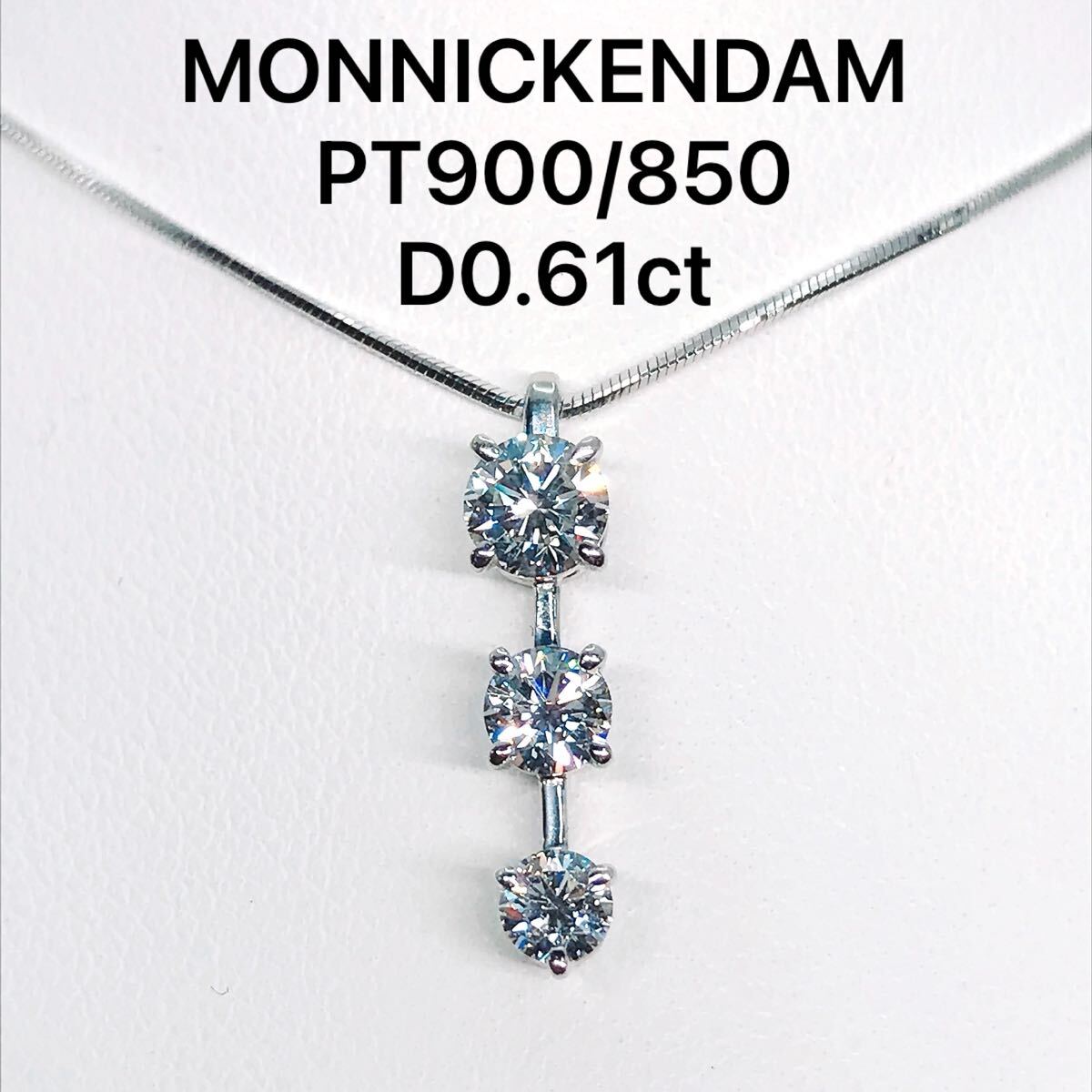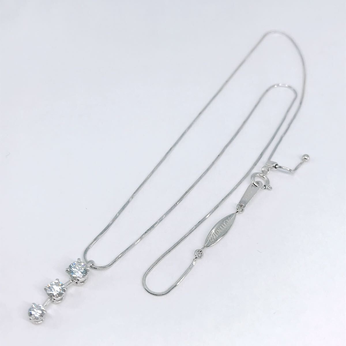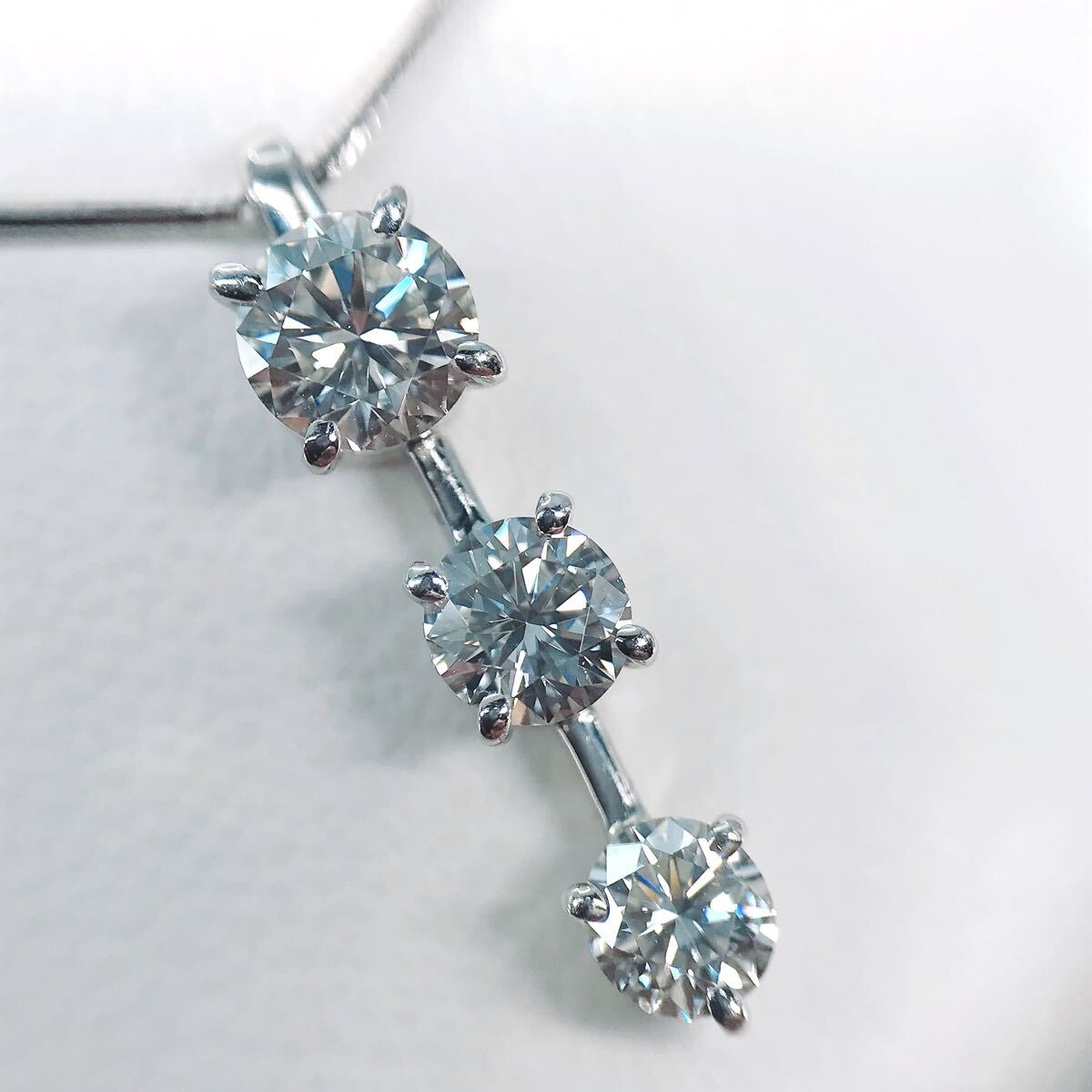 無色透明系の上質なモニッケンダムのダイヤモンドを3石セッティングしたトリロジーデザインのネックレスです。