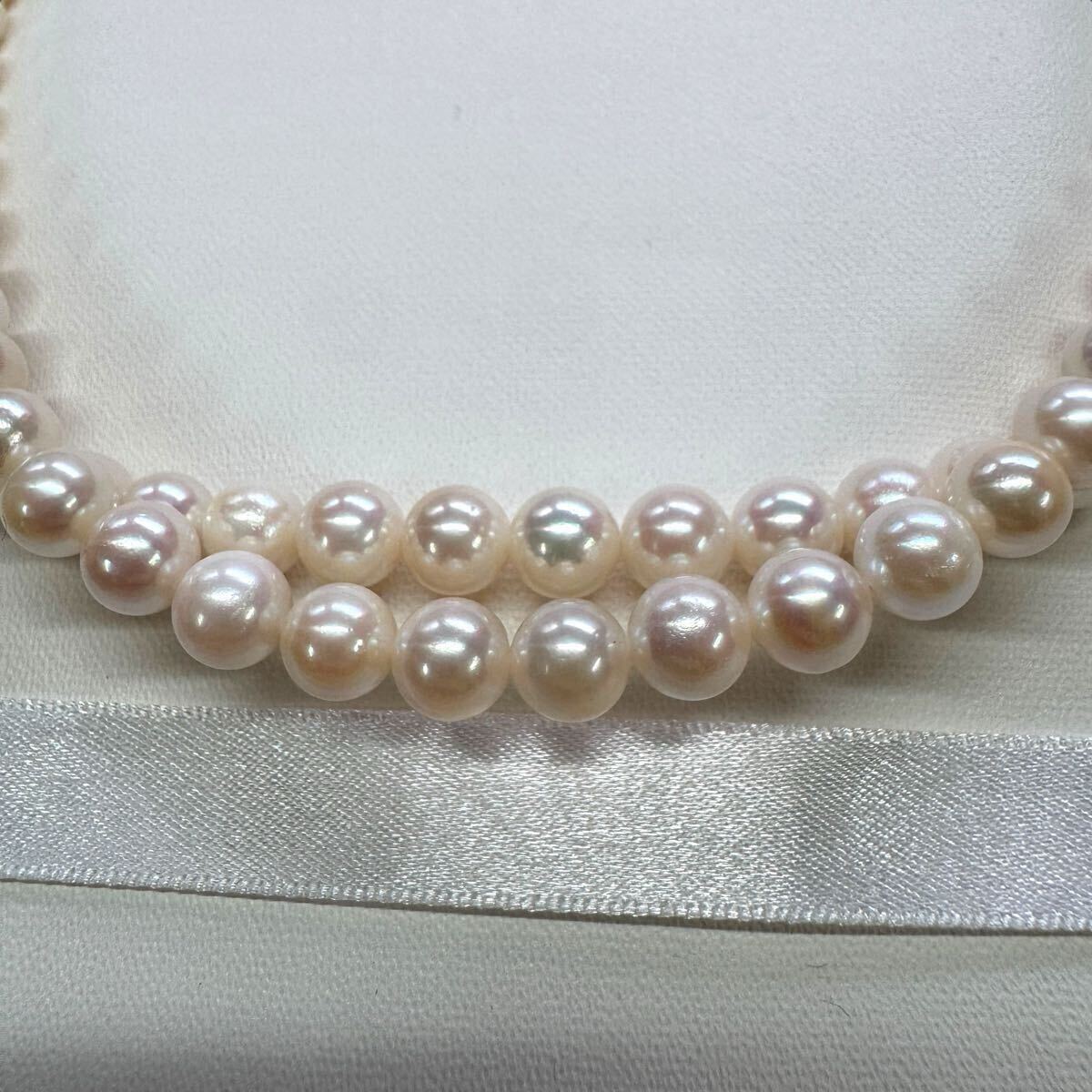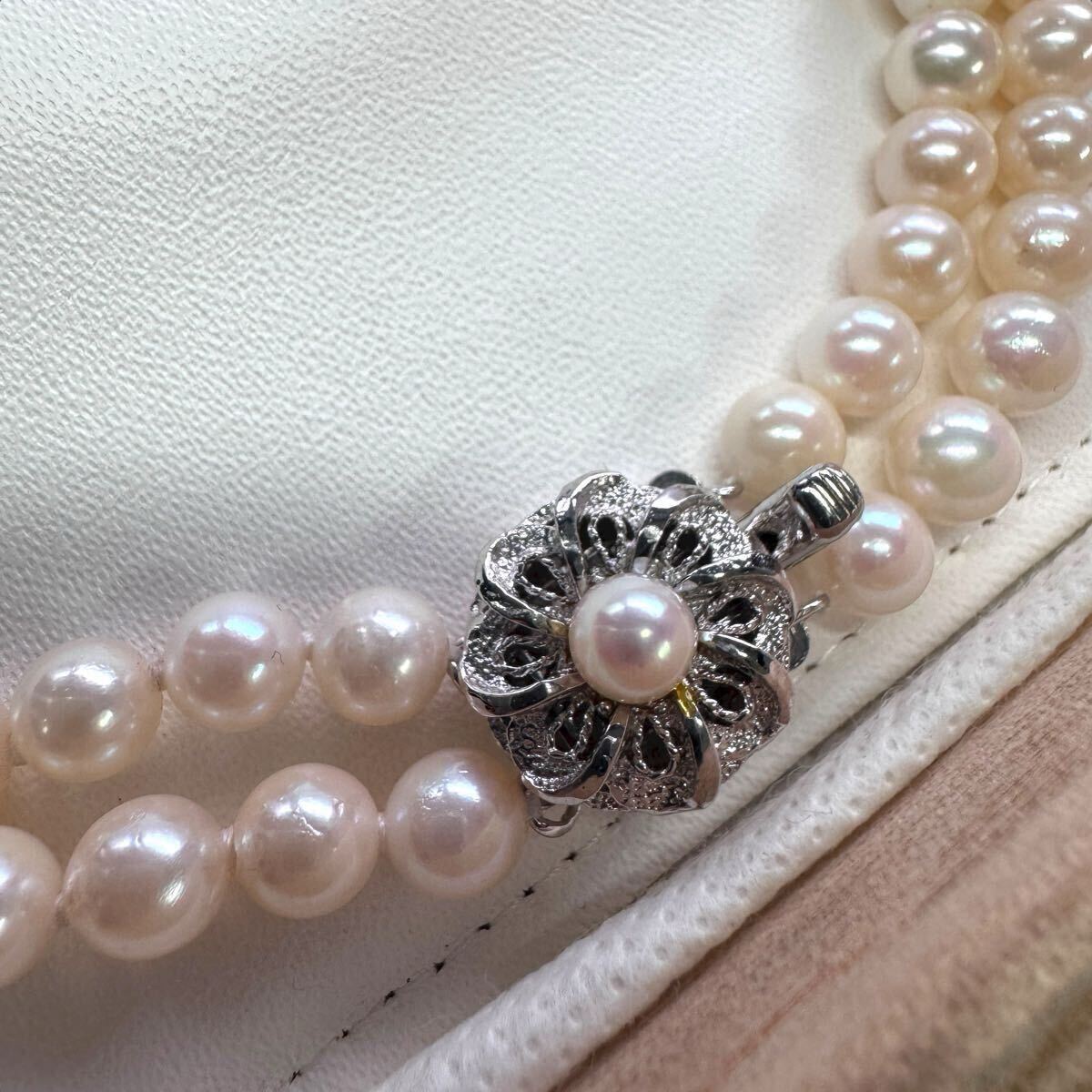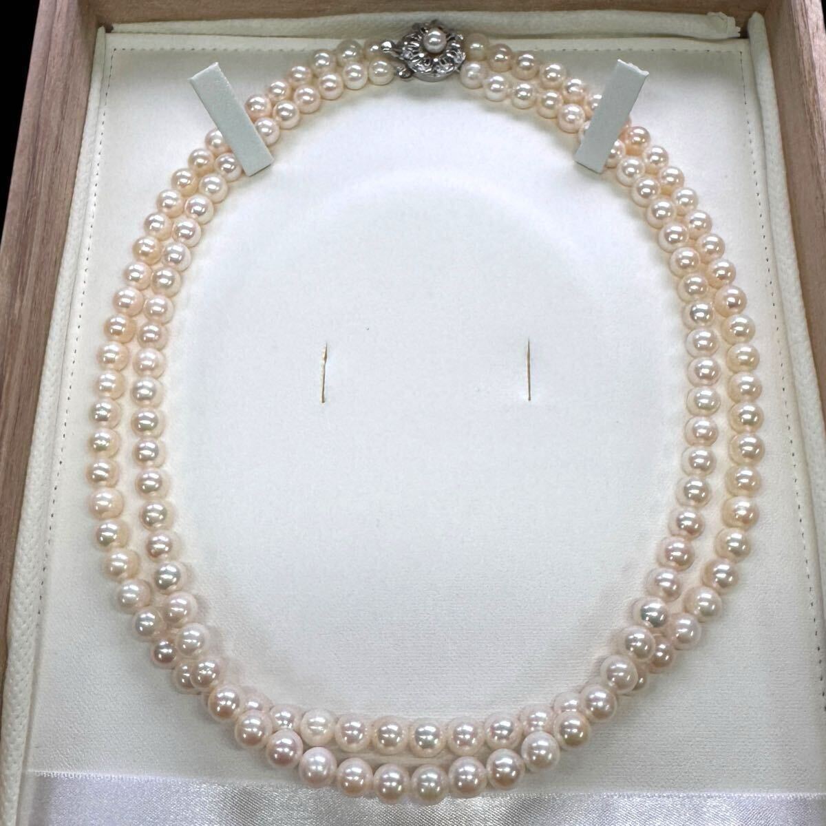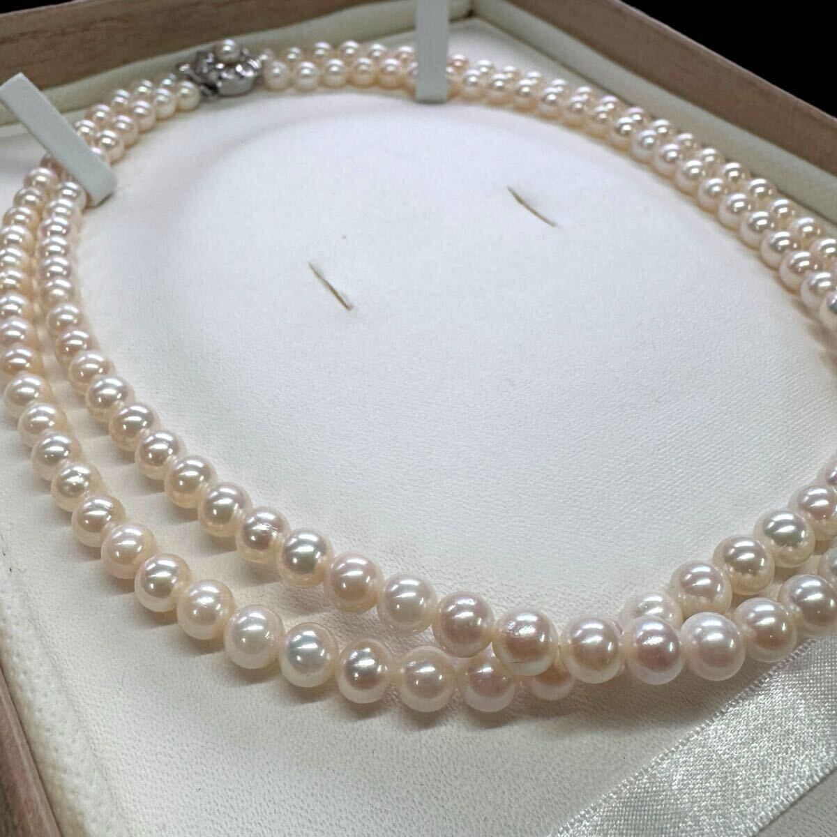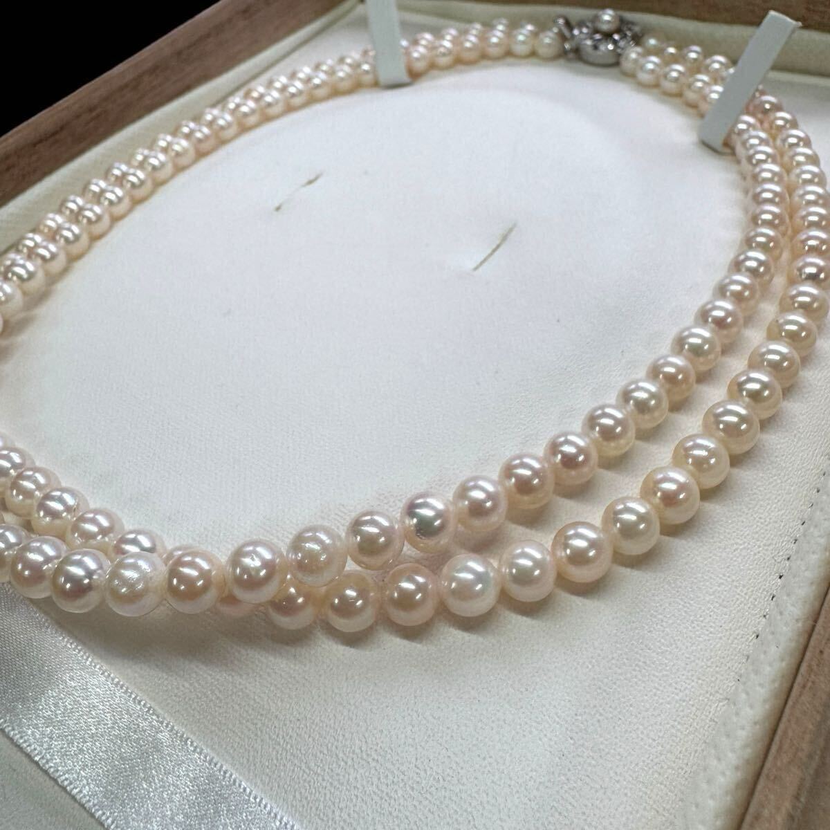 【アイテム】テリ強 アコヤ真珠 あこや 2連 パール ネックレス ラウンド SV金具 ジュエリー 約6.0-6.5mm 高級 Pearl necklace jewelry