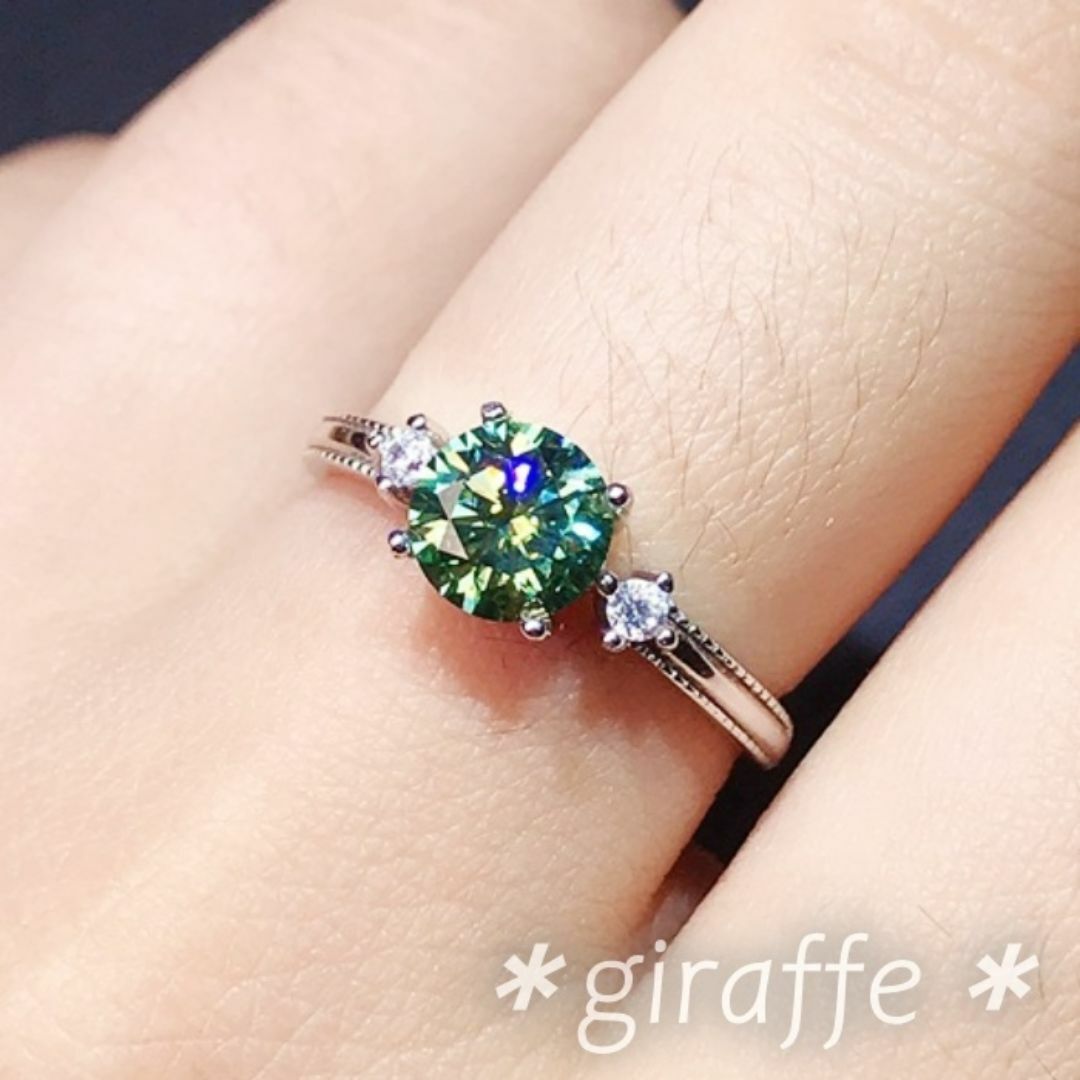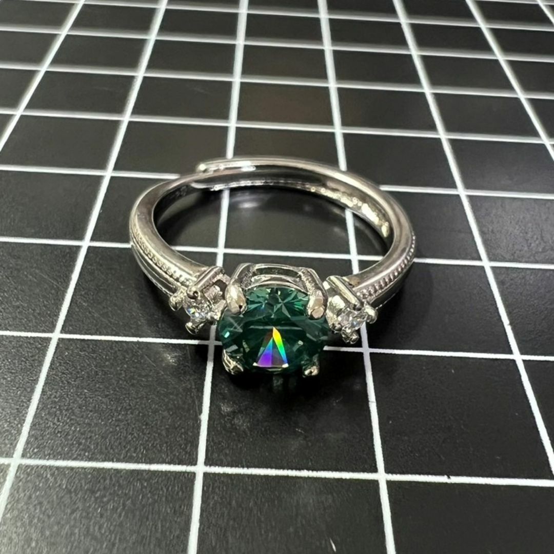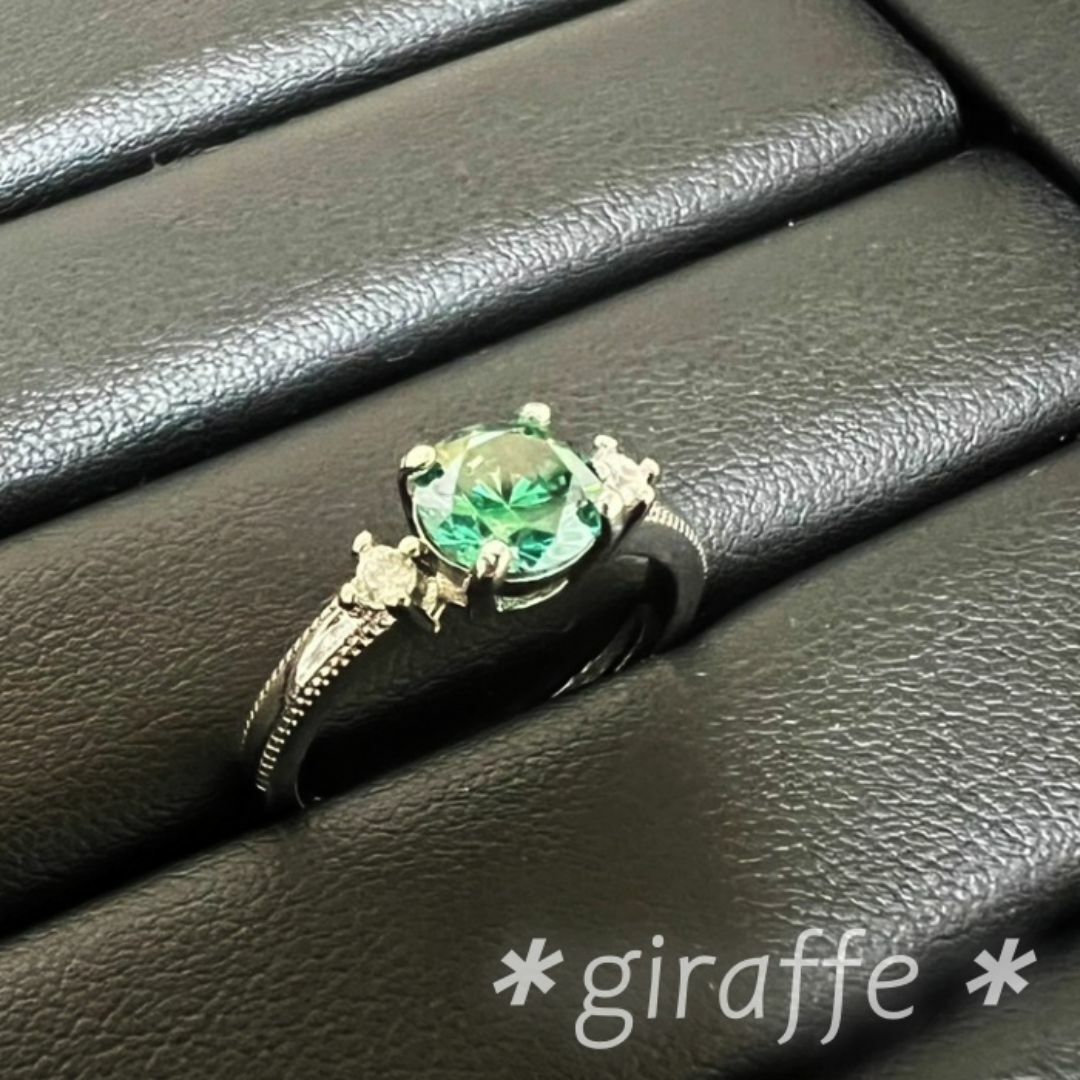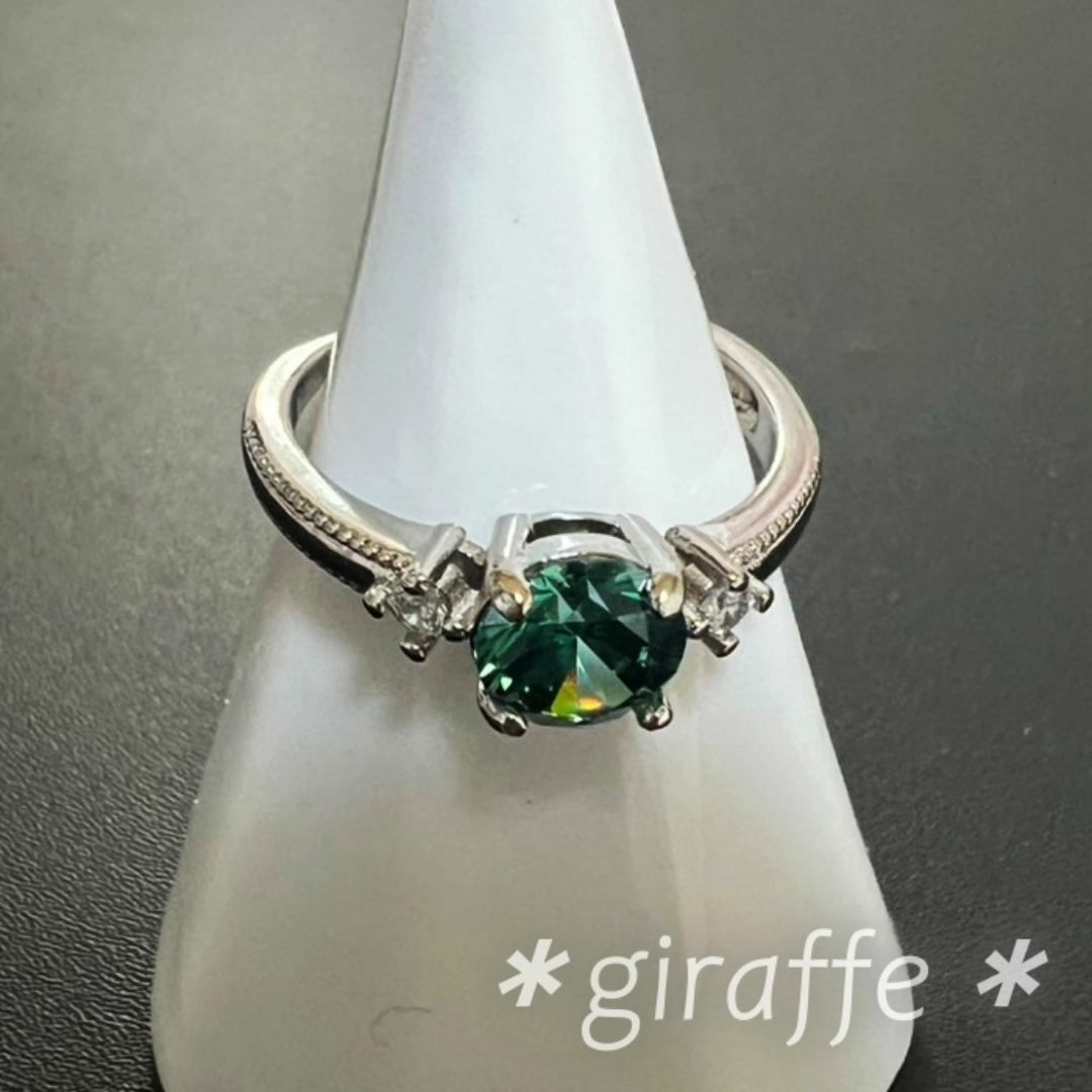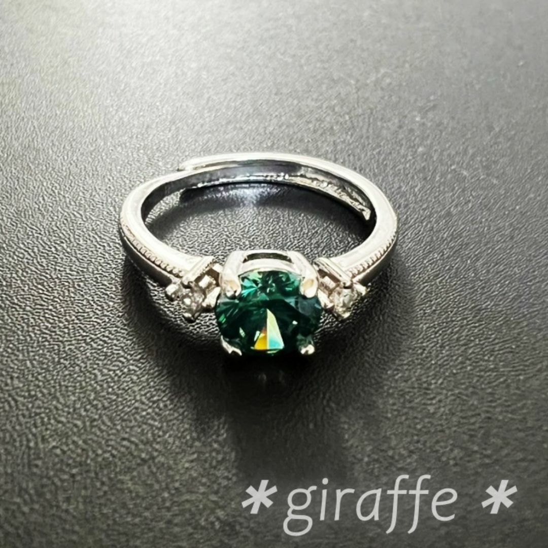 A802 匿名配送 リング レディース 指輪 ジルコニア グリーン フリーサイズ サイズ調節可能 シルバー