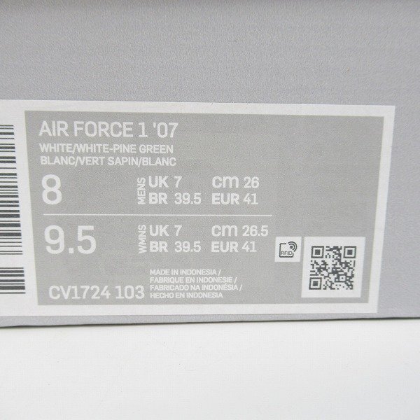 【未使用】 NIKE/ナイキ AIR FORCE 1 '07/エアフォース WHITE/WHITE-PINE GREEN/CV1724-103/26 /080 | |||||||||||||||||||||||||